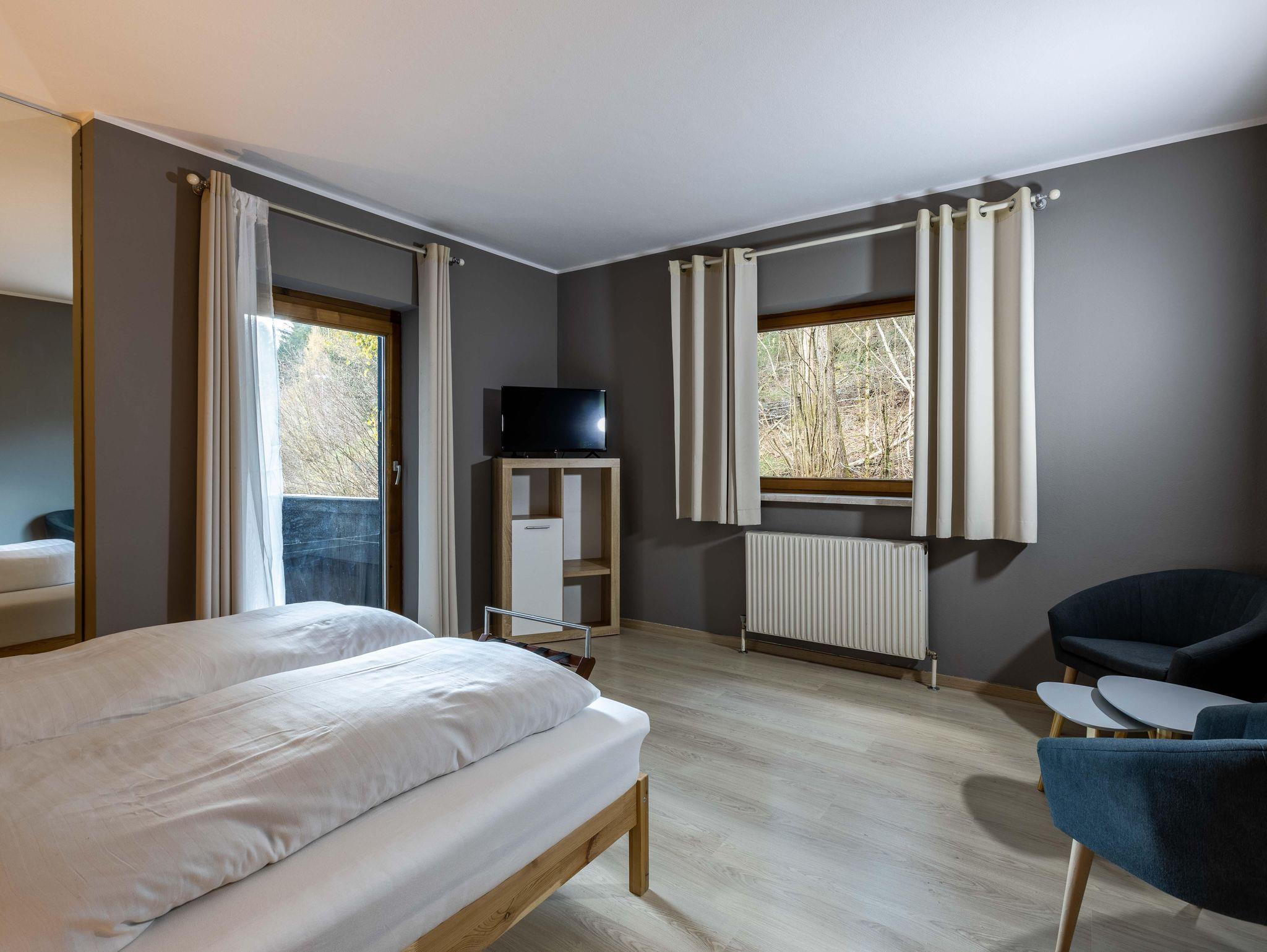 Dich erwartet ein Studio (2 Einzelbetten) mit Badezimmer, Sitzecke und Fernseher. Diese Einheit hat keine eigene Küche. Sehr gerne begrüßen wir euch zum Abendessen im Restaurant Fratelli!