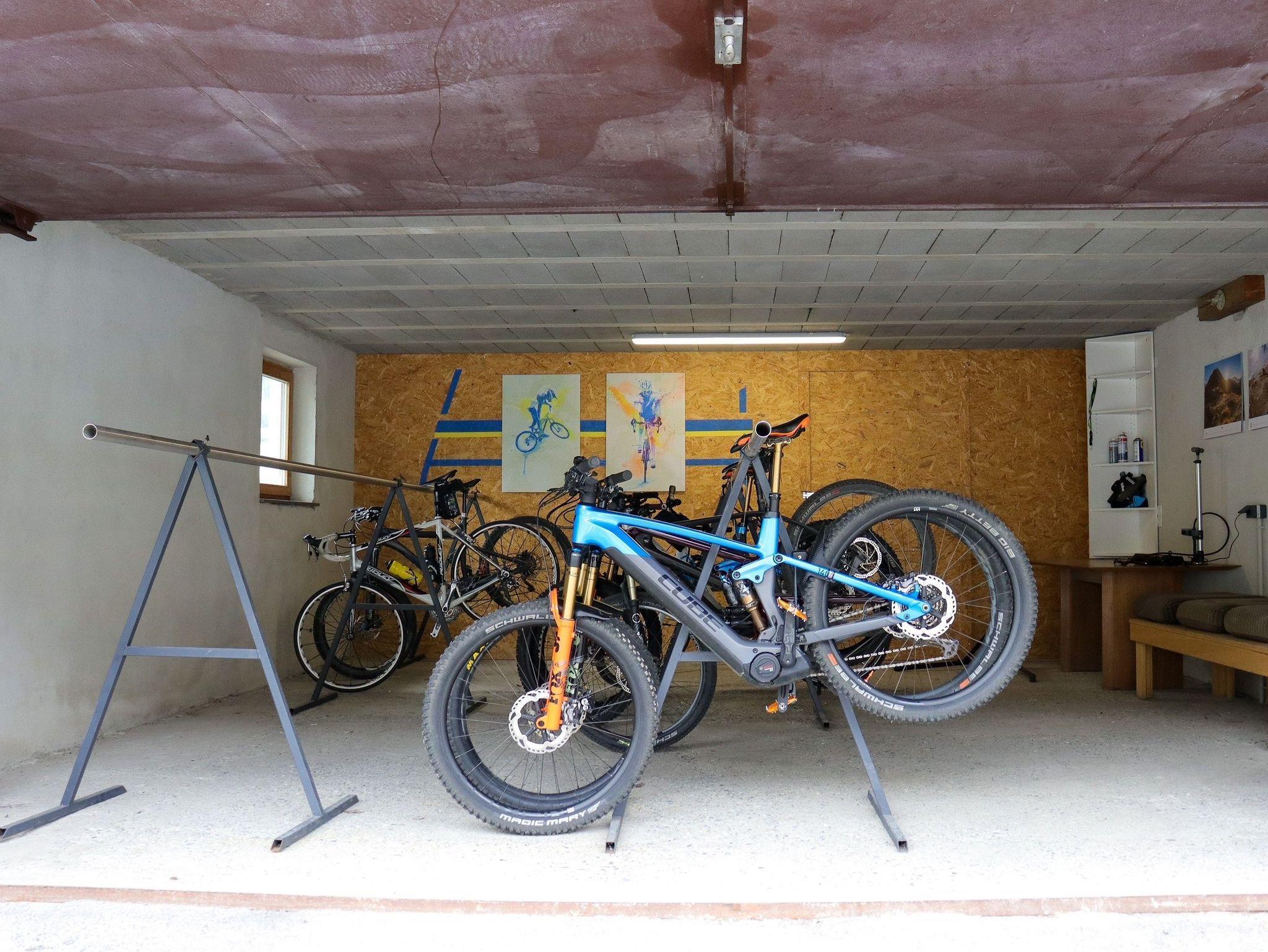 * eigener Biketrockenraum mit absperrbarer Bikegarage mit Werkbank