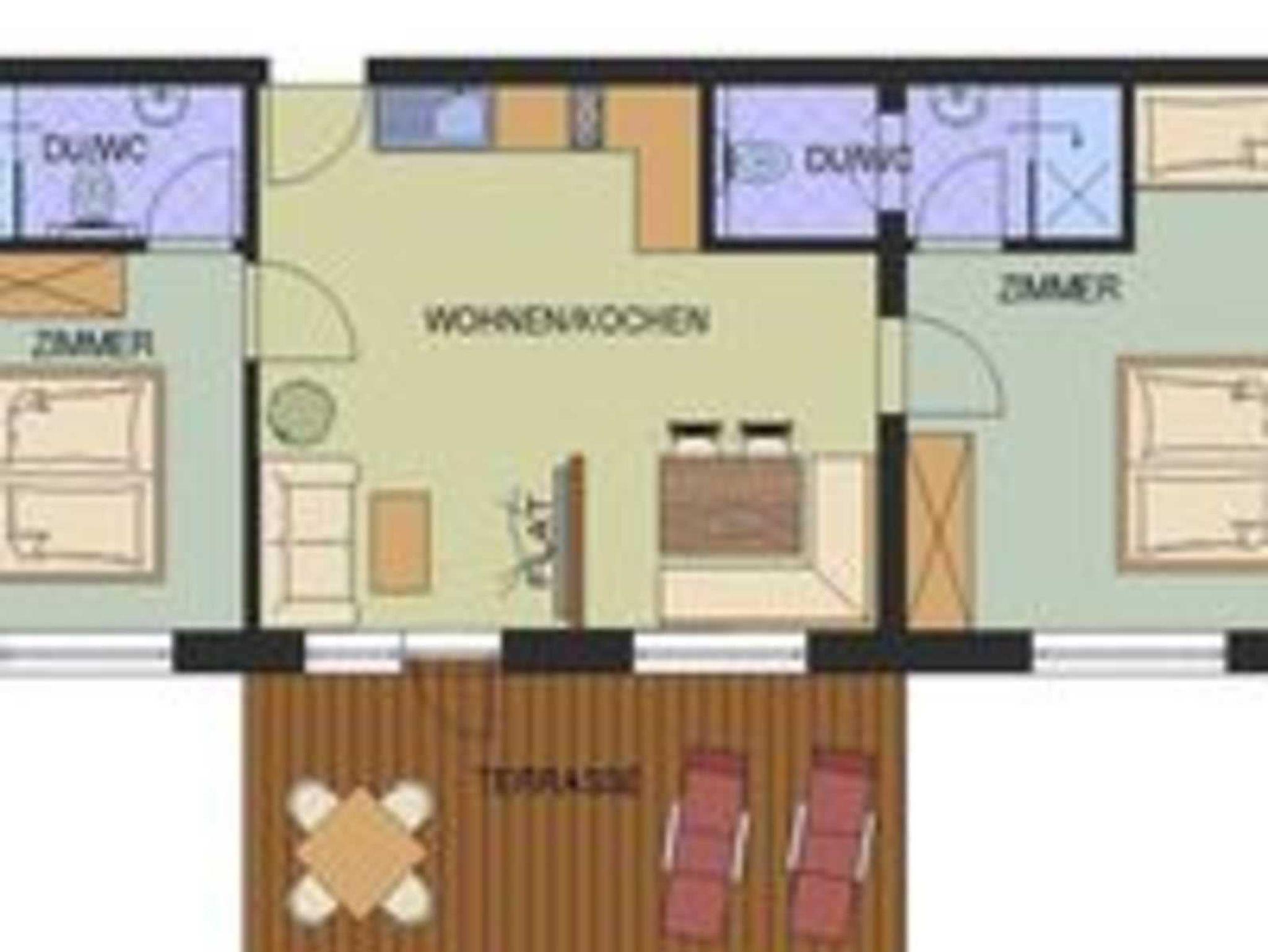 • zwei kuschelige Schlafzimmer (2 Doppelzimmer eines mit Etagenbett) mit jeweils seperater DU/WC