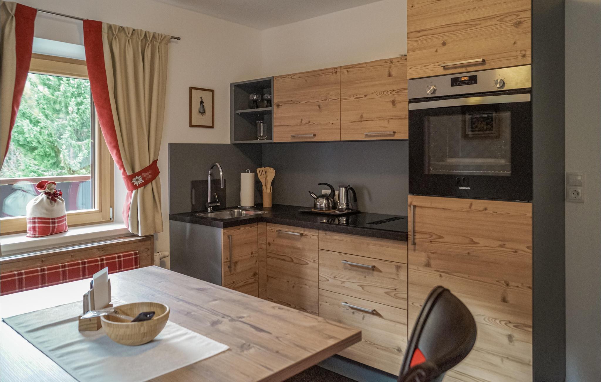Midt i de tyrolske alper byder denne roligt beliggende og utroligt lækre ferielejlighed jer velkommen. I dette smukke og moderne gæstgiveri finder selv større eller flere familier plads, da der er flere lejligheder i bygningen. Jeres lejlighed byder på en blanding af moderne og rustikke træelementer, der sørger for velvære i samtlige værelser. Tilbring hyggelige timer på jeres eksklusive tagterrasse, hvor I kan drikke dagens første kop kaffe og nyde den fantastiske panoramaudsigt over bjergene. Planlæg vandreture, aktiviteter eller skiture for den kommende dag, mens I spiser en god morgenmad sammen.