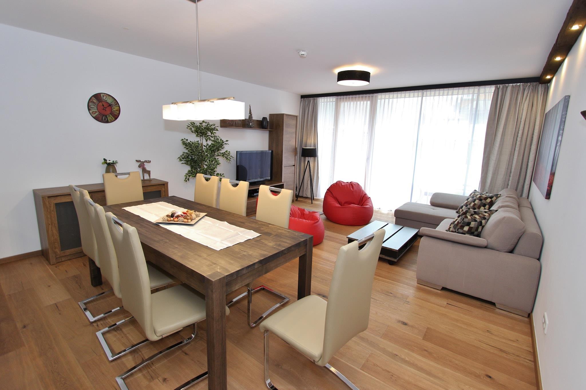 Dette smukke og luksuriøse lejlighedskompleks ligger lige i centrum af Neukirchen am Großvenediger, midt i Hohe Tauern National Park lige ved siden af skiliften. Med sin perfekte høj kvalitet finish og masser af plads og komfort, vil denne indkvartering få dig til at føle dig hjemme. Din lejlighed ligger på første sal og har en rummelig stue med åbent køkken. Der er to soveværelser med fælles badeværelse og et soveværelse med eget badeværelse. Total luksus! Du har en vidunderlig udsigt over de omkringliggende bjerge fra din balkon eller terrasse. Hvis du virkelig vil slappe af, kan du bruge kurstedets wellnessområde, hvor du har adgang til en fabelagtig urte sauna, en finsk sauna, varmebænke og fantastiske "sneglebyger". Nært til komplekset kan du fange elevatoren til det smukke Wildkogel Arena skiområde, så du kan lade din bil parkeres om vinteren i den gratis parkeringsplads (max 2 parkeringspladser pr. lejlighed). Er du ude efter en anden ændring? Zillertal Arena og Kitzbühel / Kirchberg skiområder er både på få minutter væk i bil. Om sommeren byder de omkringliggende bjerge og de mange seværdigheder og attraktioner i umiddelbar nærhed masser af muligheder for aktive feriegæster såvel som alle, der søger ro og afslapning. Hvis de bor i perioden fra maj til maj Oktober modtager du et nationalparks sommerkort, som giver dig fri adgang til elevatorer, svømmebassiner, aktiviteter, offentlig transport og meget mere. Anbefales i høj grad Andre detaljer: Du kan leje håndklæder til saunaen rival) i receptionen.