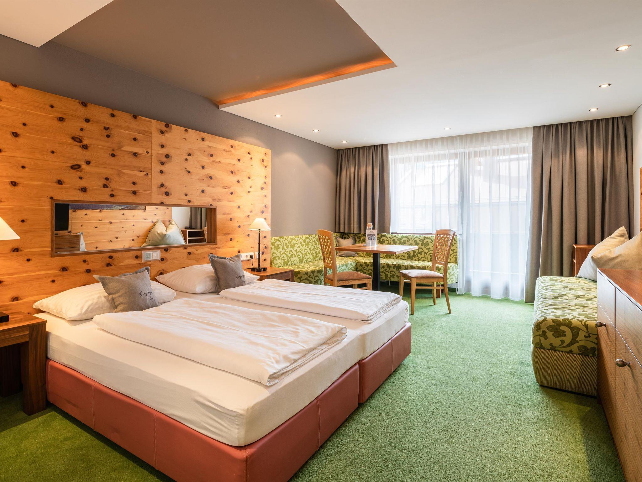 Wohlfühlzimmer (für 2-3 Personen) mit Bad/Dusche/WC, Sitzecke oder Couch, Fön, Balkon, Safe, Flat-TV, W-lan und Telefon ca. 25-30 m² Zirbenholz sorgt für einen erholsamen Schlaf.