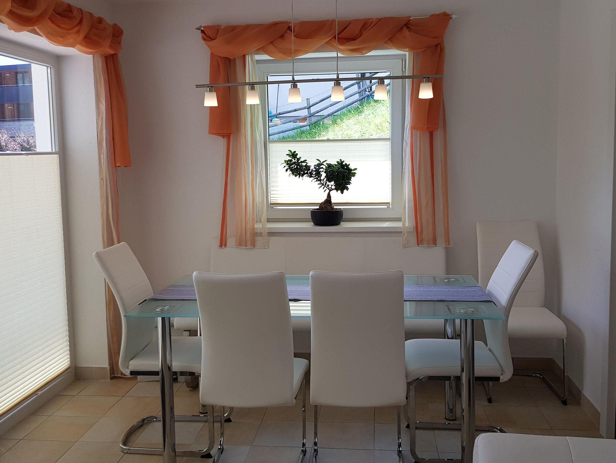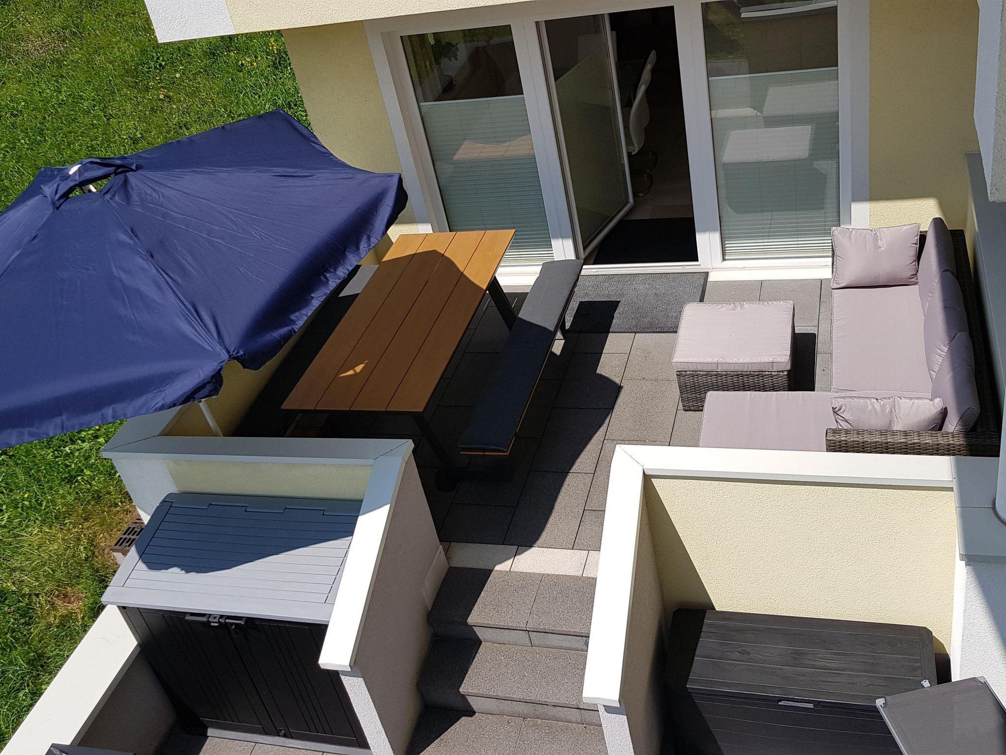 Komfortables Apartment mit einer voll ausgestatteten Küche, 3 x Dusche/WC, drei getrennte Schlafzimmer mit jeweils Doppelbett, K-TV, Internet, zusätzliche Sitz- Ausziehcouch in jedem Zimmer, Essbereich/Aufenthatsbereich, Garderobe, Panoramaterrasse und kostenlose Parkplätze. Wohnungsgröße: 85 m², Terrasse 15 m²