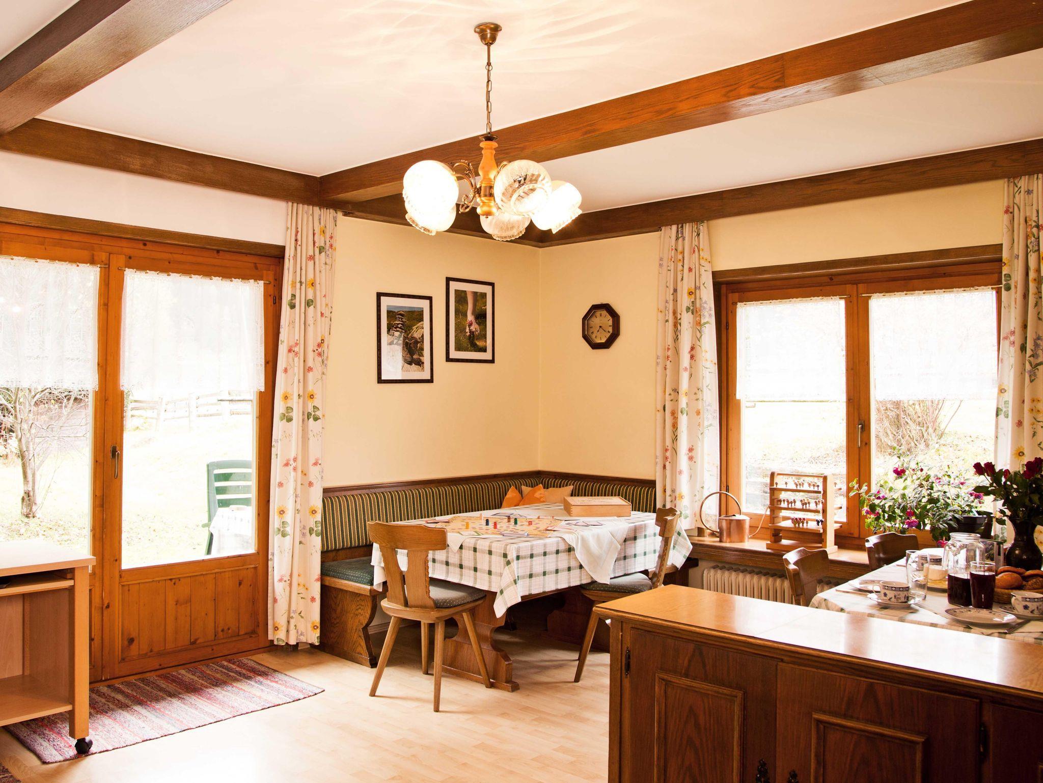 Abgeschlossenes Appartement. 1. unbd 2.Etage; Größe 120 m²; große Wohnküche mit 5 Schlafzimmern (10 Personen); Internetanschluss; Kabel-TV; eigenes Skiabteil mit Schuhtrockner; Balkon und Gartenbenützung