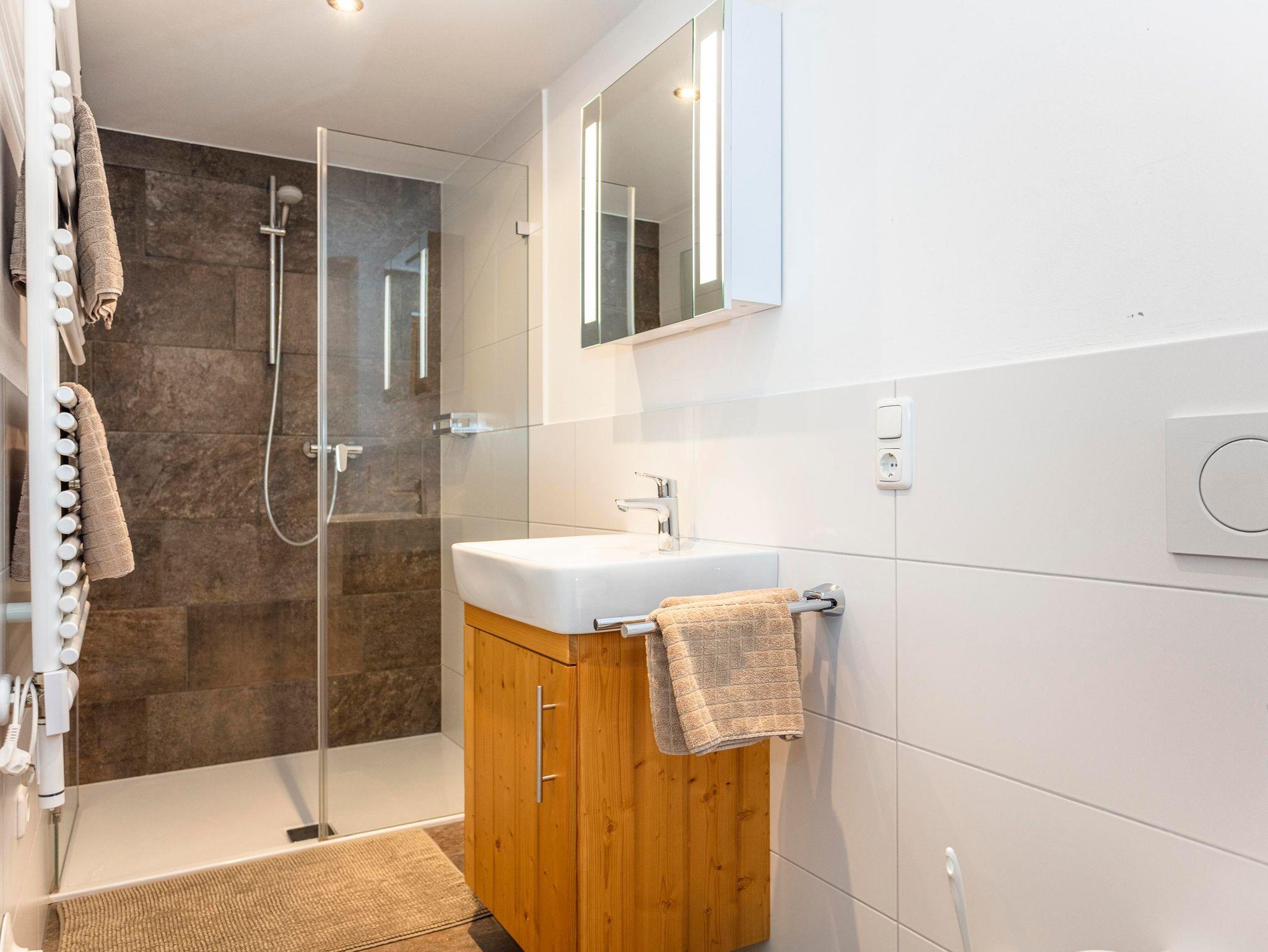 Schlafzimmer mit Doppelbett, Schlafkoje mit Etagenbett, Wohnraum mit Küche (ausziehbare Doppelcouch), modernes Bad mit Dusche und WC, großzügige Sonnenterrasse mit traumhaftem Bergblick