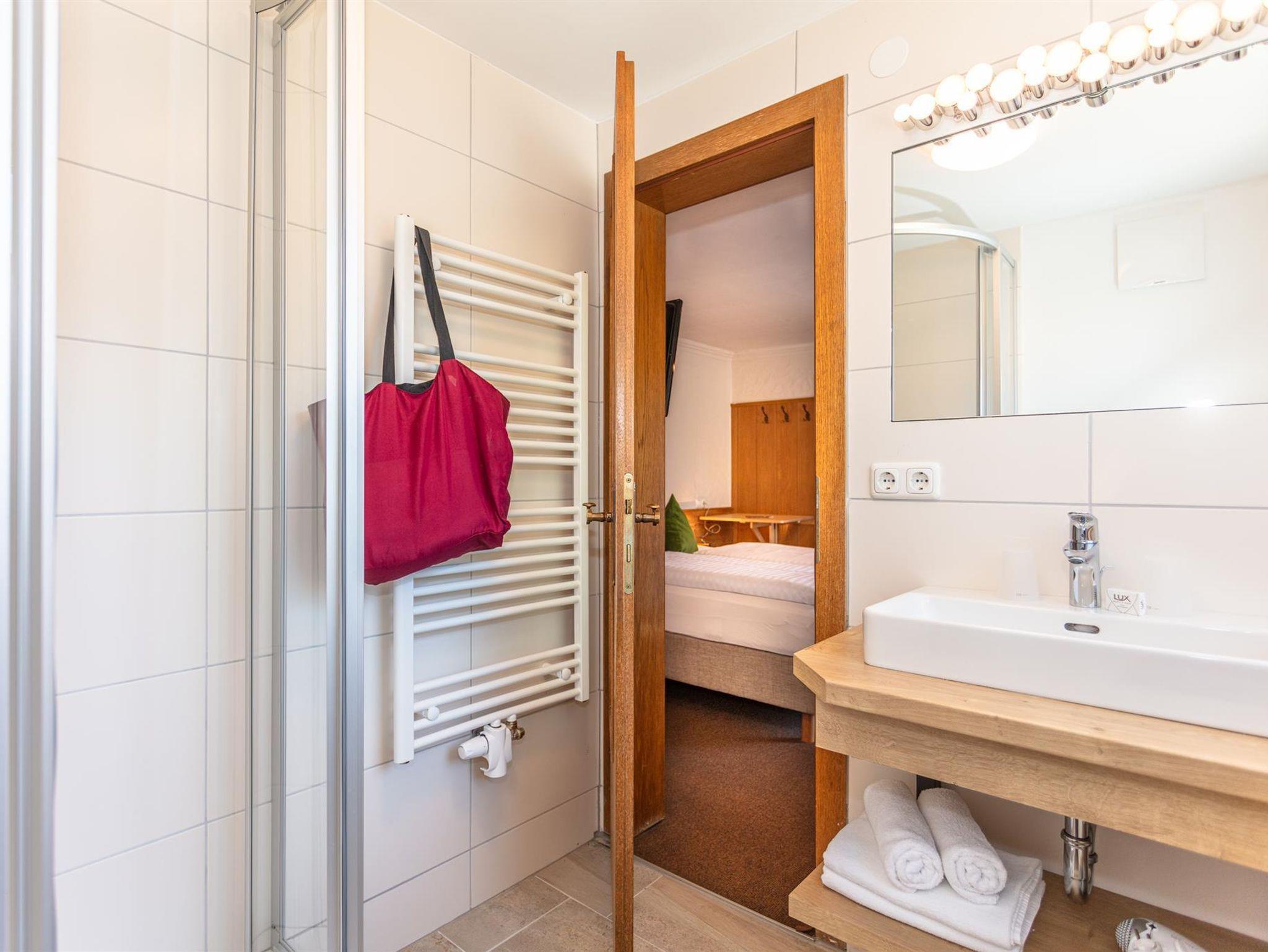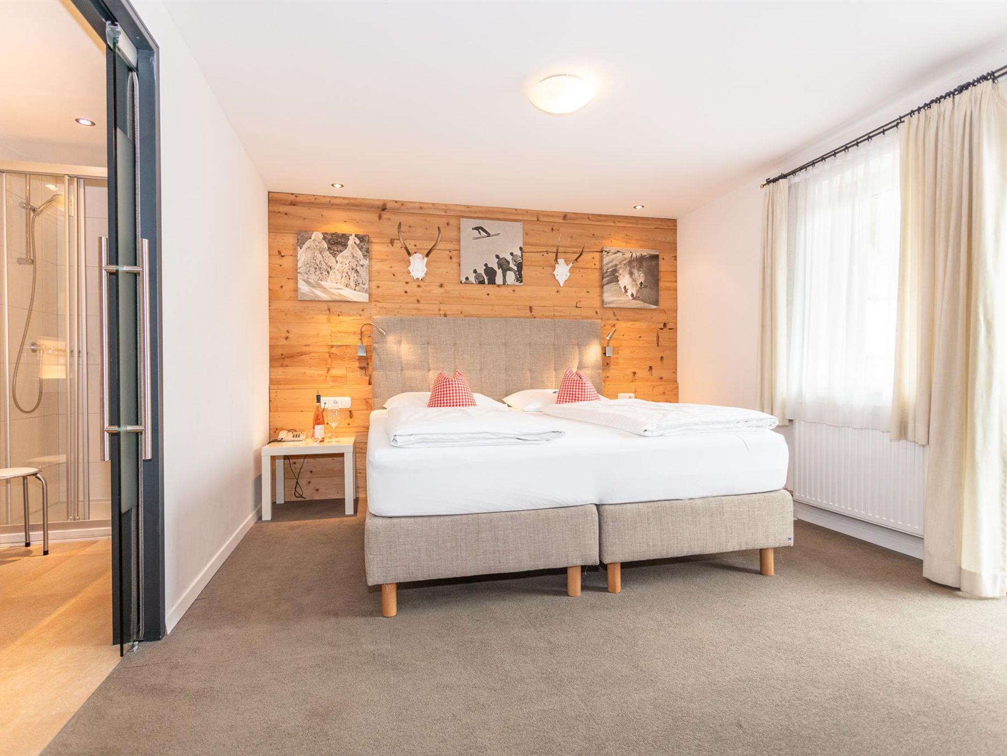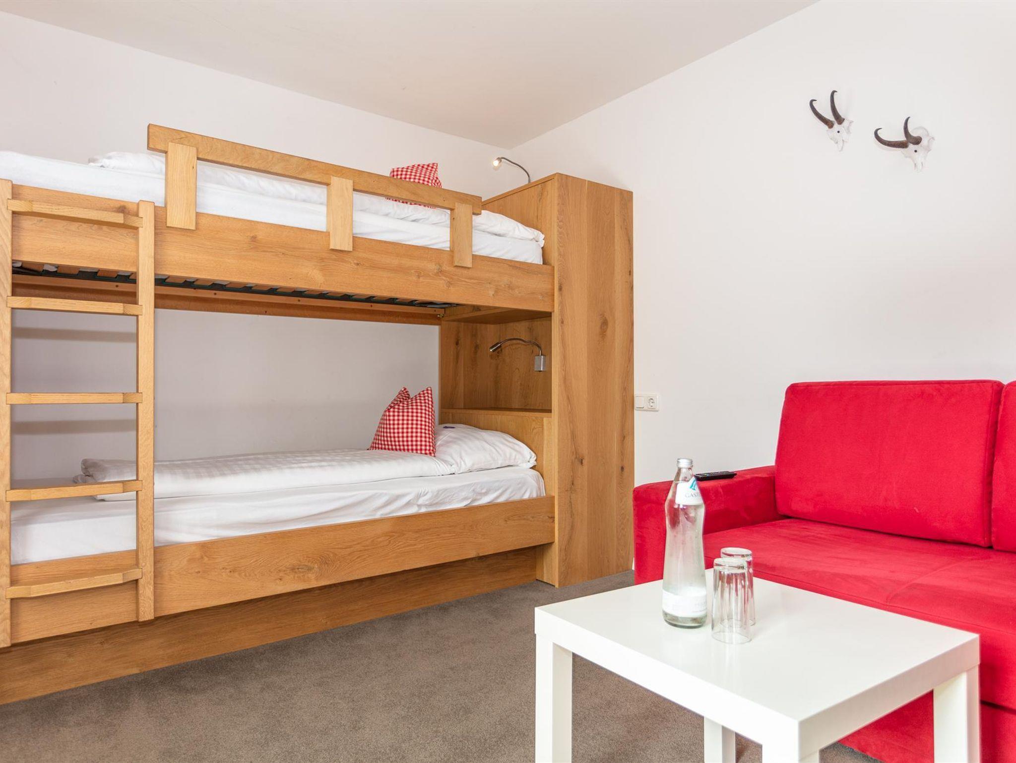 SUITE mit tollem Ausblick DIREKT im Haus (2. Stock)! ca 70 m² groß. Im Vorraum befindet sich eine kleine Kitchennette und kombinierbare Tische für 2-4 Personen.Von dort geht es gerade aus in den WINTERGARTEN-Wohnbereich (Zugang zum Balkon) mit (Auszieh-)Couch & Sitzmöglichkeit, Flat-Tv, rechts und links eine Tür in die 2 hellen lichtdurchfluteten Schlafzimmer ...Bad mit Dusche & Wc Für alle die mehr Raum im Hotel brauchen und evtl. auch Kleinigkeiten in der Küche zubereiten wollen... Wellnessbereich direkt im Haus, Frühstück und Abendessen zubuchbar...