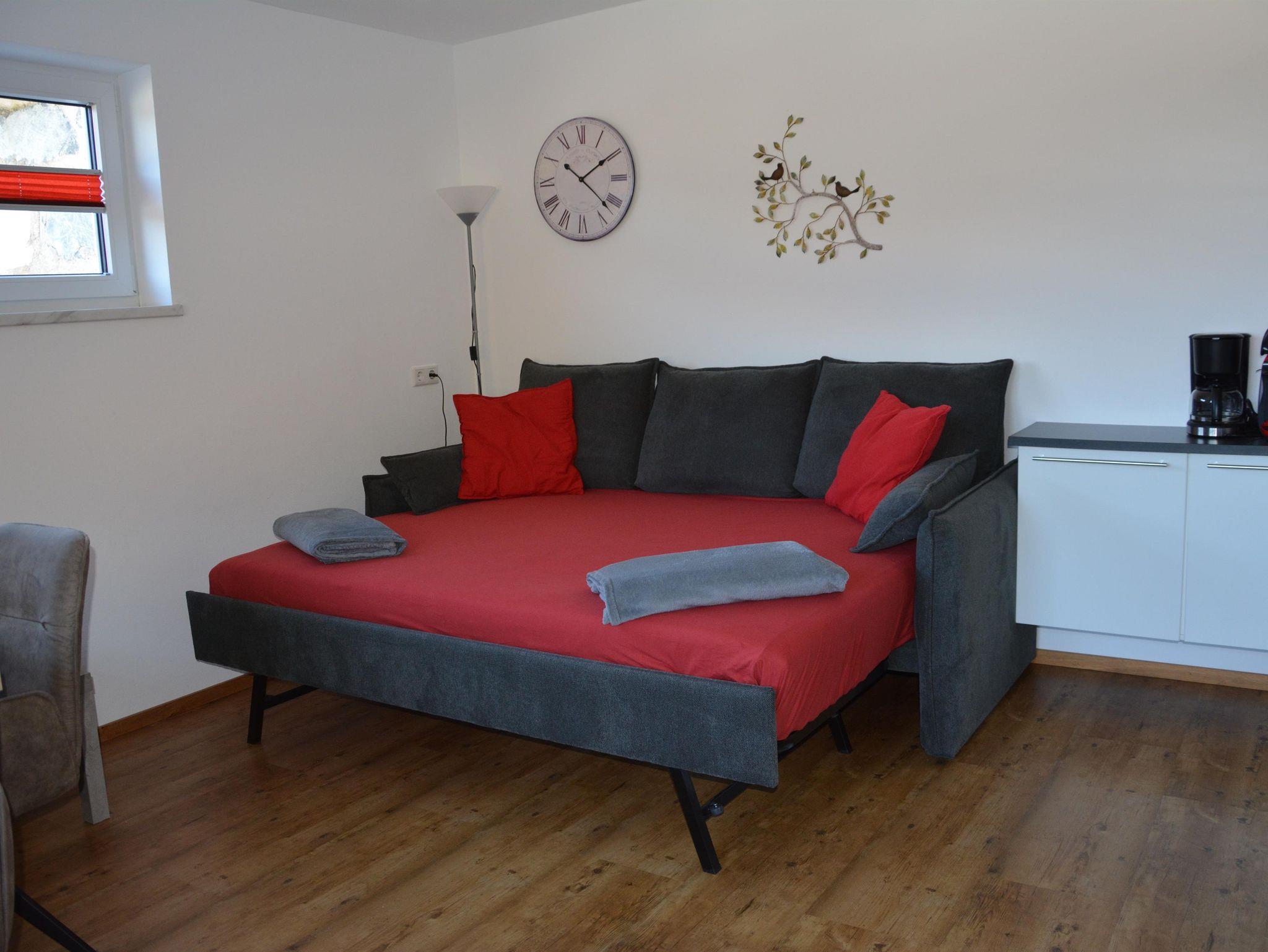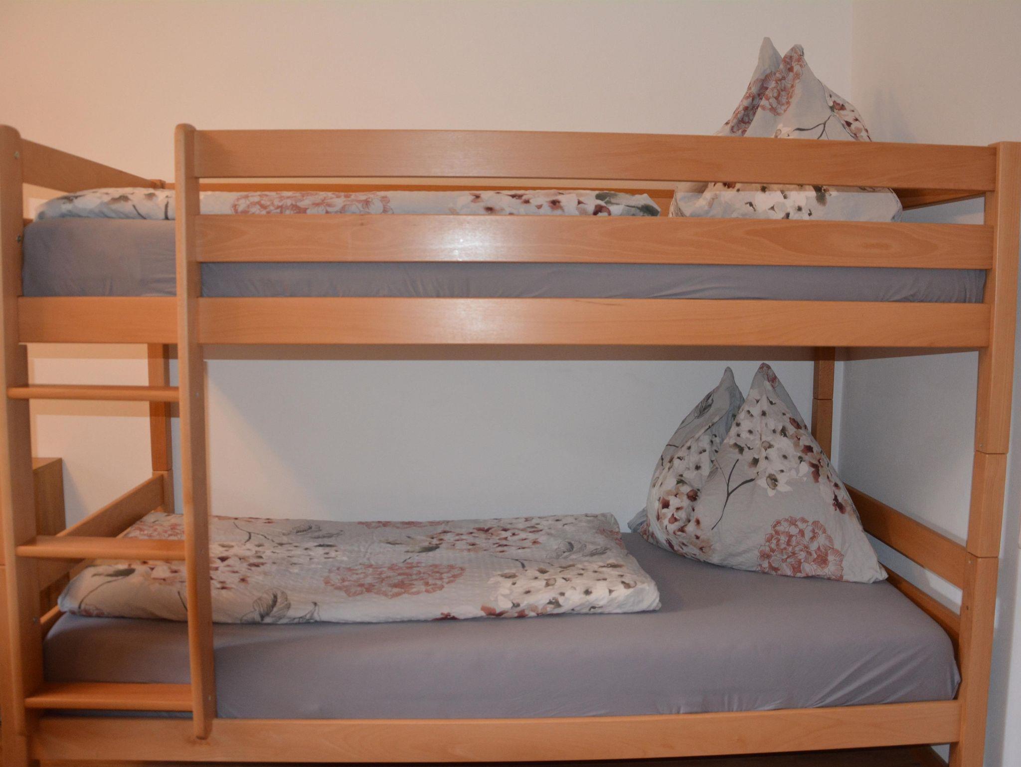 Das geräumige Schlafzimmer mit Doppelbett Etagenbett bietet Platz für 2 – 4 Personen. Im Wohn/Essbereich befindet sich noch ein Sofa, welches bei Bedarf, Platz für 1 – 2 weitere Personen bietet. Desweiteren erwartet Sie eine großzügige Küche und eine gemütliche Sitzecke. Der Wohnbereich sowie das Schlafzimmer sind mit einem TV mit Kabelanschluss ausgestattet, natürlich darf auch kostenloses W-Lan nicht fehlen.