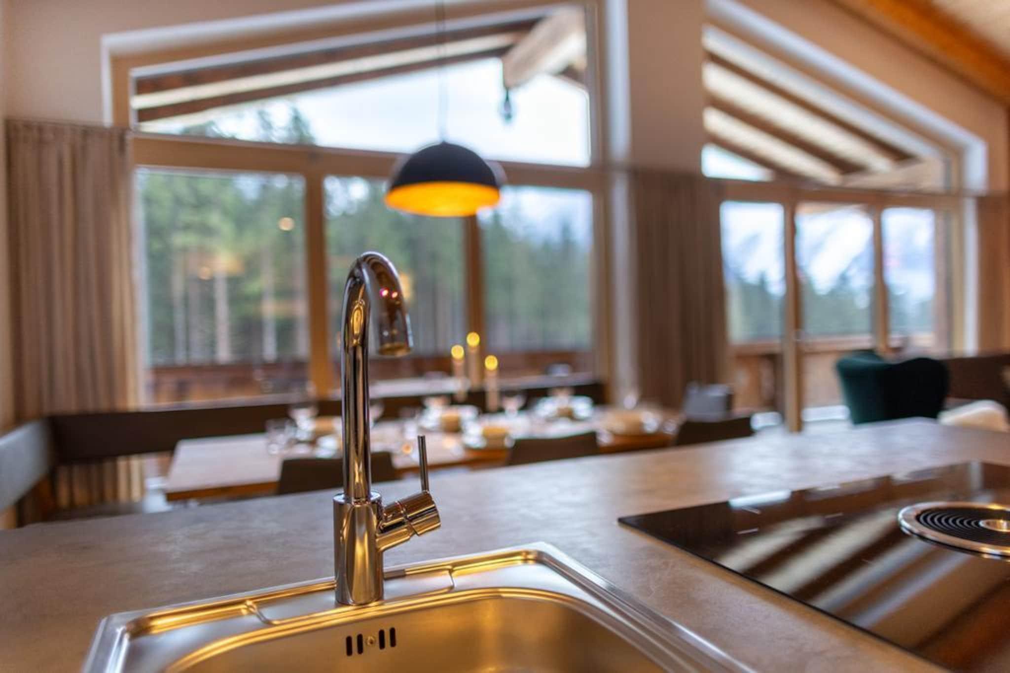 Stueetage: (entre(toilet), Stue(Fjernsyn, pejs), åbent køkken(elkedel, kaffemaskine(kopper), ovn, mikrobølgeovn, opvaskemaskine , køle-fryseskab), soveværelse(køjeseng(70 x 180 cm)), skiopbevaring, Internetadgang) Kælderetage: (soveværelse(dobbeltseng), Soveværelse med badeværelse(dobbeltseng, bruser(Walk-in-bruser), håndvask, toilet), badeværelse(bruser, sauna, håndvask), Repos, pulterkammer(tørretumbler, vaskemaskine)) carport, Internetadgang, balkon, terrasse, havemøbler, parkering, parkering, swimmingpool(deles med andre gæster, naturlig svømmedam)