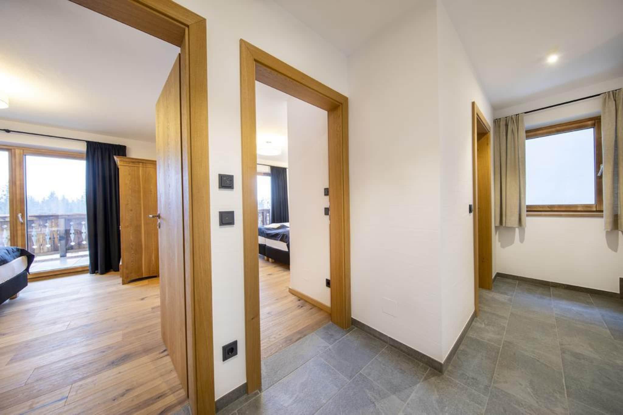 På en meget speciel beliggenhed, sydvest for den berømte Neukirchen am Großvenediger, omgivet af frisk bjergluft, grønne enge og smukke snedækkede hvide skråninger, er dette smukke luksuriøse chalet bygget på Rossbergs solrige skråning. Den smukke hytte er bygget med karakter. Den liberale brug af træ, særprægede detaljer, en perfekt finish kombineret med brugen af materialer af høj kvalitet gør huset yderst komfortabelt og luksuriøst. Du føler dig hjemme helt fra det første øjeblik. Din hytte, som du selv optager alene, har selvfølgelig mindst 2 etager, men nogle gange også 3. Et af disse gulve er opholdsområdet, som har en fantastisk udsigt gennem den enorme vinduer. Udover et opholds- og spiseplads med hyggelig brændeovn er der også et moderne åbent køkken udstyret med alt moderne udstyr. Soveværelserne, der er fordelt over gulvene, er meget atmosfæriske og har møbler af høj kvalitet. Der er også en privat sauna. Du kan parkere din bil på de delvist overdækkede parkeringspladser, som ledig. Der er flere hytter i umiddelbar nærhed, der skaber en slags landsby. Der er en centralt beliggende ski udlejning og skiskole. Derudover er der en "Imbiss" med en lille menu til en snack eller en drink. Kan du lide frisk brød hver dag? Intet problem, du kan bestille disse i receptionen. Skibakken med træningsområde (fra 2019/2020 sæsonen) ligger inden for gåafstand af hytten, perfekt til familier med små børn eller begyndere. Avancerede skiløbere kan bringes til elevatoren af det smukke Wildkogel Arena skiområde med den gratis skibus. På grund af beliggenheden lige på skråningerne kan du stå tilbage til din hytte, når der er masser af sne. Vil du have noget andet? Skiområdet Zillertal Arena eller Kitzbühel / Kirchberg ligger kun få minutter væk i bil. Om sommeren tilbyder de omkringliggende bjerge og de mange seværdigheder at byde masser af muligheder for den aktive feriegæster eller for dem der søger ro. I