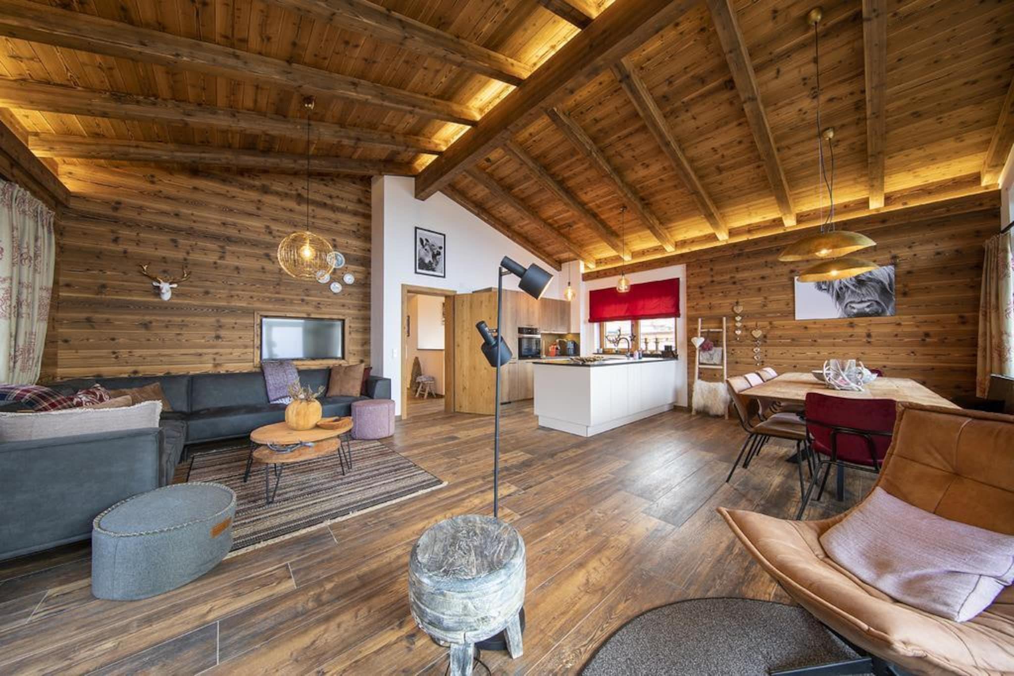 På en meget speciel beliggenhed, sydvest for den berømte Neukirchen am Großvenediger, omgivet af frisk bjergluft, grønne enge og smukke snedækkede hvide skråninger, er dette smukke luksuriøse chalet bygget på Rossbergs solrige skråning. Den smukke hytte er bygget med karakter. Den liberale brug af træ, særprægede detaljer, en perfekt finish kombineret med brugen af materialer af høj kvalitet gør huset yderst komfortabelt og luksuriøst. Du føler dig hjemme helt fra det første øjeblik. Din hytte, som du selv optager alene, har selvfølgelig mindst 2 etager, men nogle gange også 3. Et af disse gulve er opholdsområdet, som har en fantastisk udsigt gennem den enorme vinduer. Udover et opholds- og spiseplads med hyggelig brændeovn er der også et moderne åbent køkken udstyret med alt moderne udstyr. Soveværelserne, der er fordelt over gulvene, er meget atmosfæriske og har møbler af høj kvalitet. Der er også en privat sauna. Du kan parkere din bil på de delvist overdækkede parkeringspladser, som ledig. Der er flere hytter i umiddelbar nærhed, der skaber en slags landsby. Der er en centralt beliggende ski udlejning og skiskole. Derudover er der en "Imbiss" med en lille menu til en snack eller en drink. Kan du lide frisk brød hver dag? Intet problem, du kan bestille disse i receptionen. Skibakken med træningsområde (fra 2019/2020 sæsonen) ligger inden for gåafstand af hytten, perfekt til familier med små børn eller begyndere. Avancerede skiløbere kan bringes til elevatoren af det smukke Wildkogel Arena skiområde med den gratis skibus. På grund af beliggenheden lige på skråningerne kan du stå tilbage til din hytte, når der er masser af sne. Vil du have noget andet? Skiområdet Zillertal Arena eller Kitzbühel / Kirchberg ligger kun få minutter væk i bil. Om sommeren tilbyder de omkringliggende bjerge og de mange seværdigheder at byde masser af muligheder for den aktive feriegæster eller for dem der søger ro. I