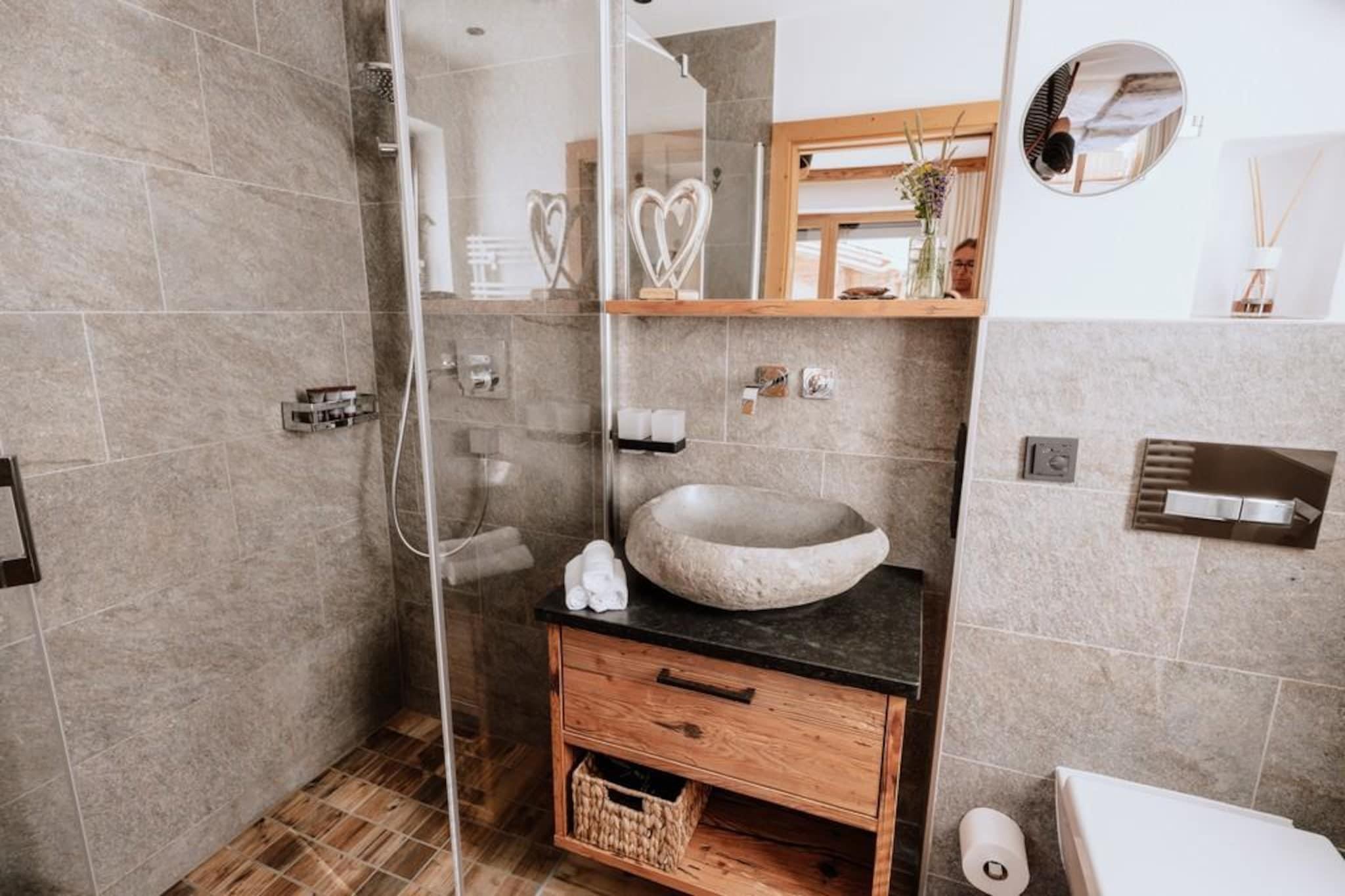 Til den sydvestlige del af den velkendte Neukirchen am Großvenediger og midt i frisk bjergluft, grønne enge og vidunderligt snedækkede hvide skråninger, kan du finde den vidunderlige luksuriøse hytte bygget på den solrige Rossberg-hældning. Den smukke hytte er konstrueret med karakter. Den liberale brug af træ, særprægede detaljer, en perfekt finish kombineret med brugen af materialer af høj kvalitet gør huset yderst komfortabelt og luksuriøst. Du føler dig hjemme helt fra det første øjeblik. Din hytte, som du selv optager alene, har selvfølgelig mindst 2 etager, men nogle gange også 3. Et af disse gulve er opholdsområdet, som har en fantastisk udsigt gennem den enorme vinduer. Udover et opholds- og spiseplads med hyggelig brændeovn er der også et moderne åbent køkken udstyret med alt moderne udstyr. Soveværelserne, der er fordelt over gulvene, er meget atmosfæriske og har møbler af høj kvalitet. Der er også en privat sauna. Du kan parkere din bil på de delvist overdækkede parkeringspladser, som ledig. Der er flere hytter i umiddelbar nærhed, der skaber en slags landsby. Der er en centralt beliggende ski udlejning og skiskole. Derudover er der en "Imbiss" med en lille menu til en snack eller en drink. Kan du lide frisk brød hver dag? Intet problem, du kan bestille disse i receptionen. Skibakken med træningsområde (fra 2019/2020 sæsonen) ligger inden for gåafstand af hytten, perfekt til familier med små børn eller begyndere. Avancerede skiløbere kan bringes til elevatoren af det smukke Wildkogel Arena skiområde med den gratis skibus. På grund af beliggenheden lige på skråningerne kan du stå tilbage til din hytte, når der er masser af sne. Vil du have noget andet? Skiområdet Zillertal Arena eller Kitzbühel / Kirchberg ligger kun få minutter væk i bil. Om sommeren tilbyder de omkringliggende bjerge og de mange seværdigheder at byde masser af muligheder for den aktive feriegæster eller for dem der søger ro. I