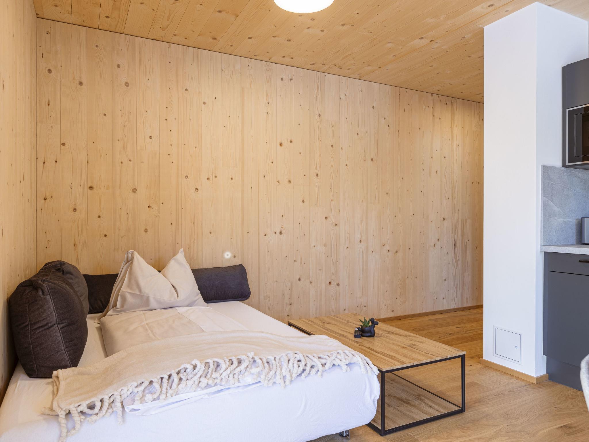 "mit 1 Schlafzimmer & Sauna", 2-room apartment 40 m2. Bright, comfortable and tasteful furnishings: living/sleeping room with 1 sofabed, dining nook and satellite TV (flat screen). 1 double bedroom. Open kitchen (oven, dishwasher, 4 ceramic glass hob hotplates, toaster, kettle, microwave, electric coffee machine). Shower/WC, Sauna. Heating. Balcony or terrace. Balcony furniture. Beautiful view of the mountains and the ski run. Facilities: hair dryer. Internet (WiFi, free). Please note: non-smokers only. The property is one of a type of property or apartment.
