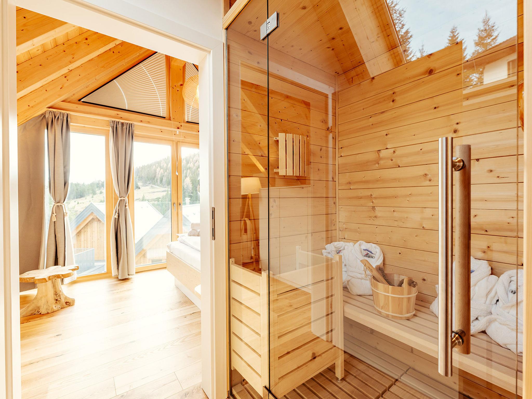 "Chalet Nr. 4 mit 2 Schlafzimmern und Sauna", 3-room house 67 m2 on 2 levels. Object suitable for 6 adults. 1 room with 1 double bed and TV. 1 room with 1 double bed. Living room with 1 sofabed and 1 pull-out bed. Kitchen, open kitchen (dishwasher, toaster, kettle, microwave, freezer, electric coffee machine). Bath/WC, shower/WC, sep. WC. Terrace. Facilities: sauna. Please note: non-smokers only. Maximum 2 pets/ dogs allowed.