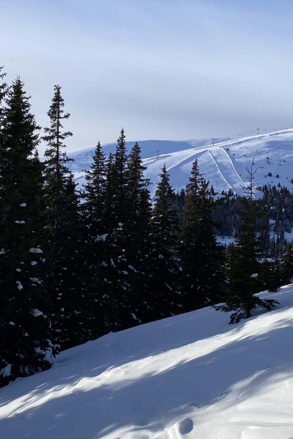 Our hunting lodge is situated on a sunny slope, not far from the ski piste - about 200 metres from the nearest piste access - and is the starting point for many hikes in summer.