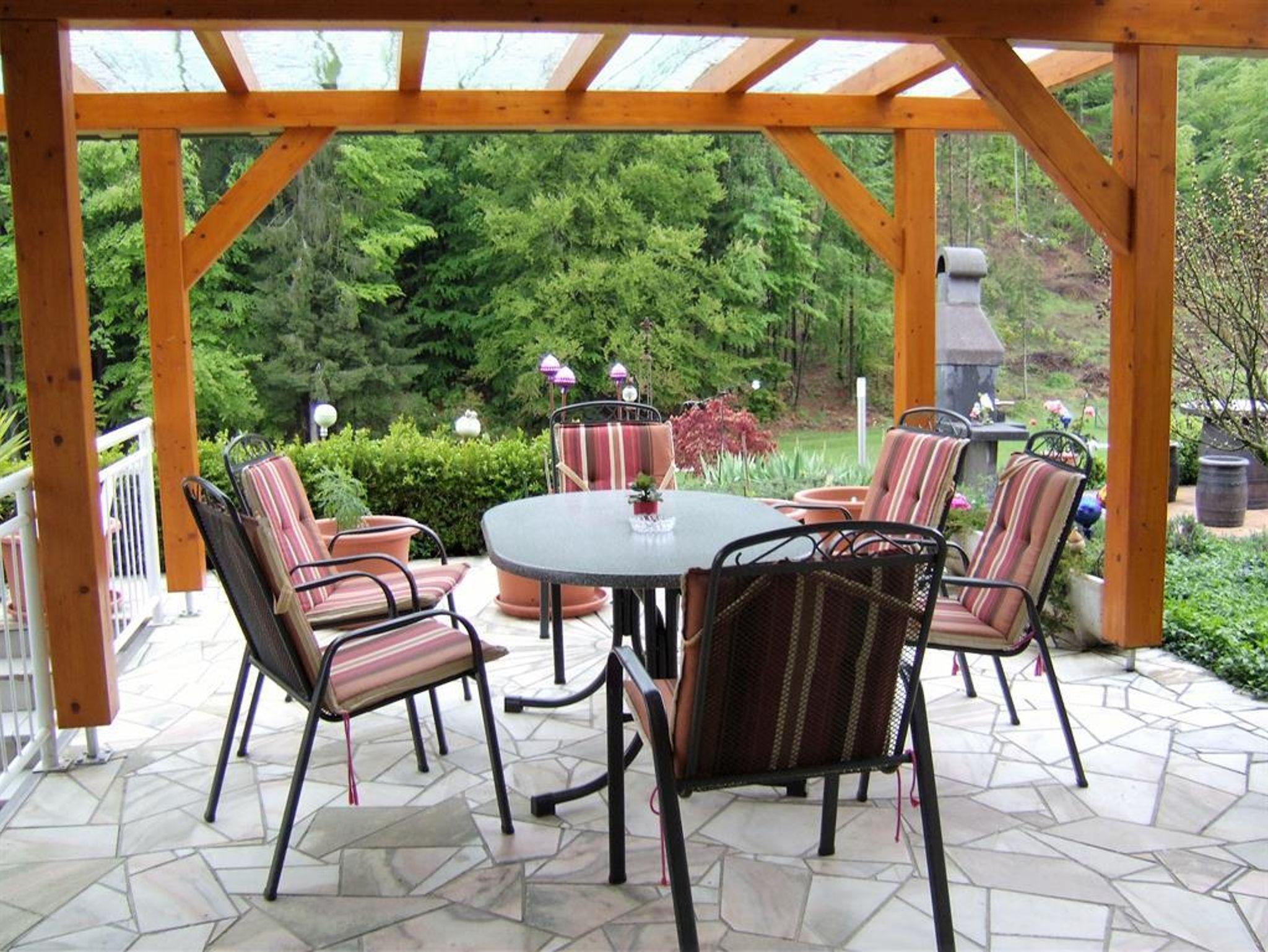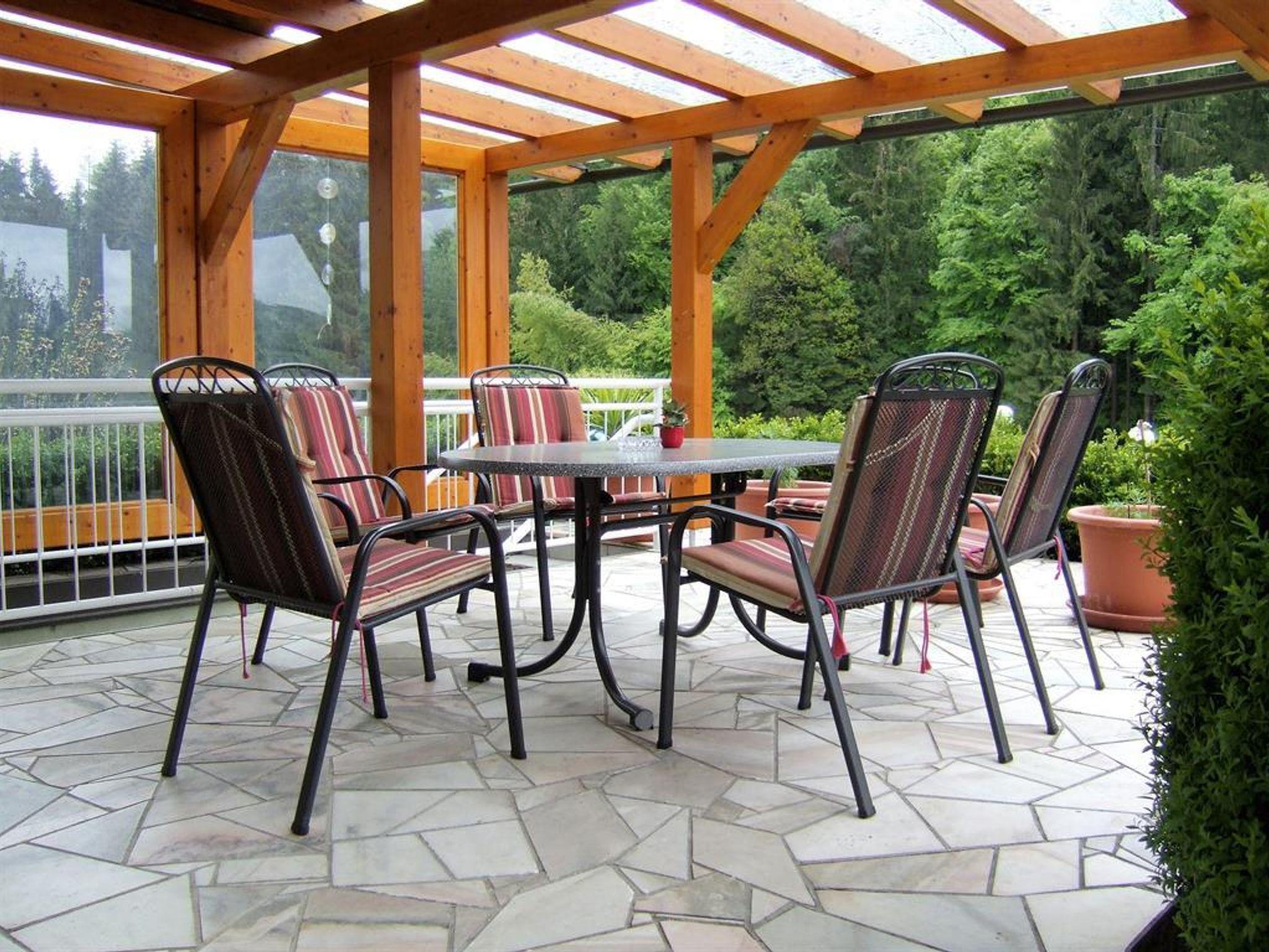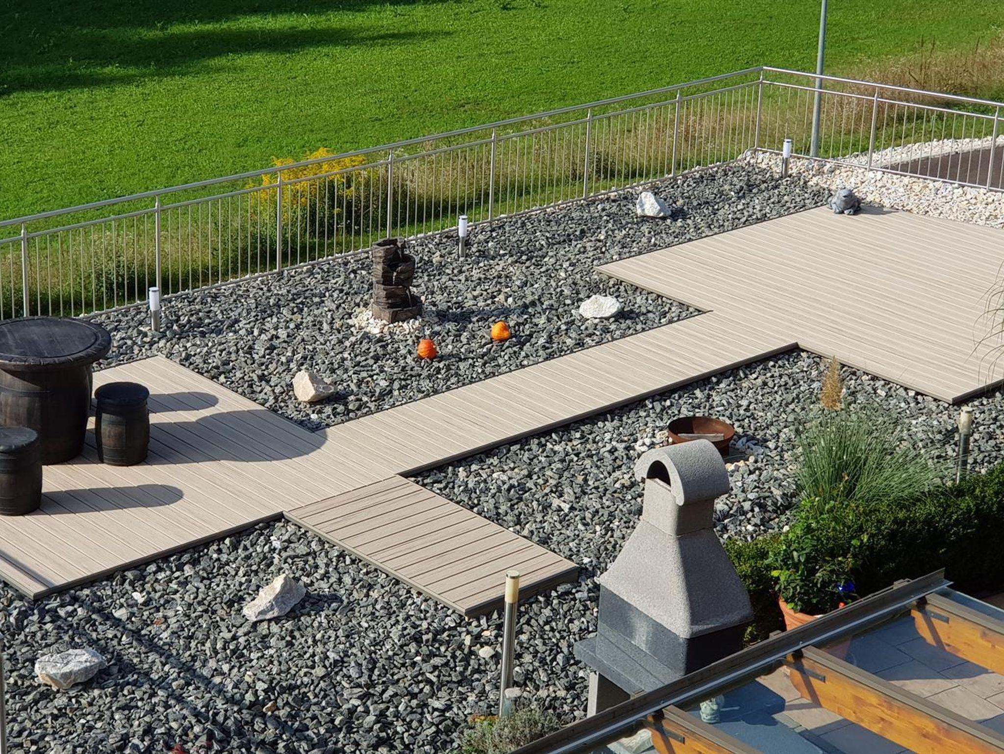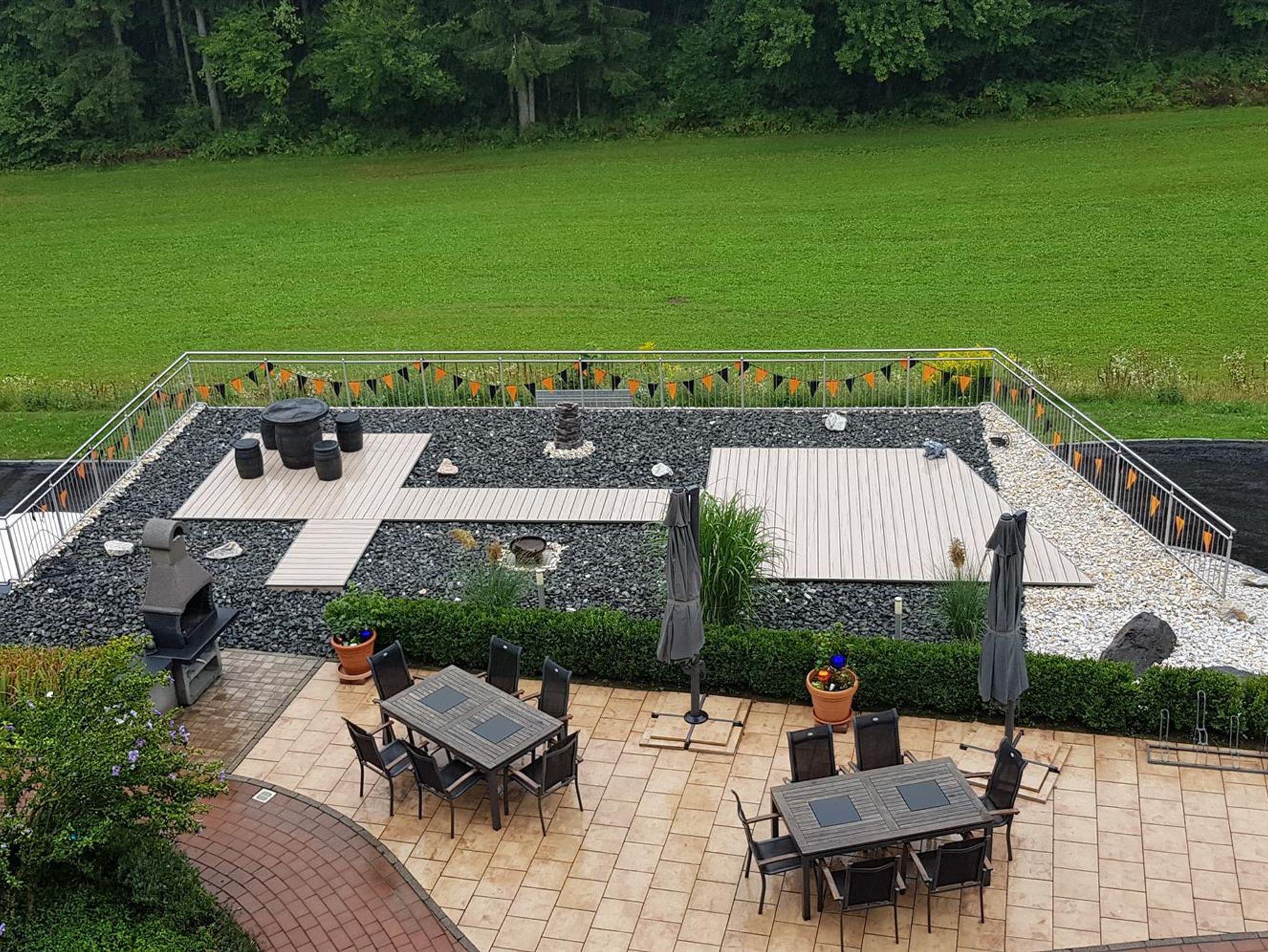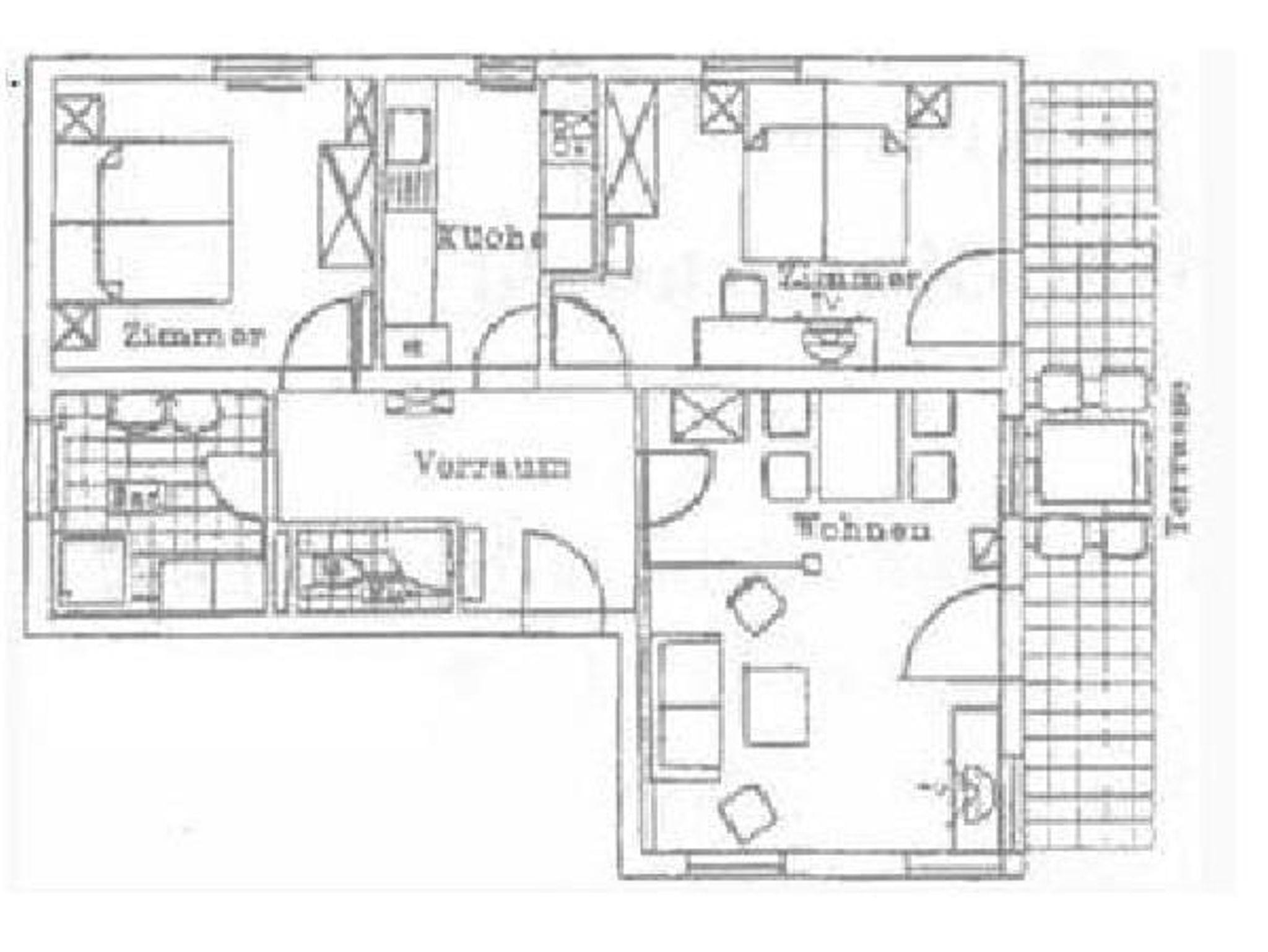 1 Wohnschlafraum, 2 Schlafzimmer, Küche, Dusche, WC extra, Vorraum, große überdachte Terrasse und SAT - TV