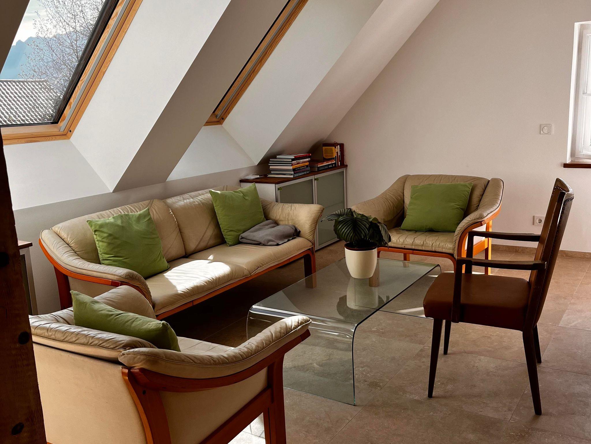 Schöne, neue Loft-Wohnung mit eigenem Gartenbereich ist als Kurzurlaub- oder Ferientripp für bis zu 6 Personen ideal geeignet. Im schönen Salzachtal gelegen bietet das Loft eine Garderobe, WC, ein großes Bad, drei Schlafzimmer, Wohnzimmer, Essbereich und Küche mit wunderbarem Bergblick. Die Wohnung befindet sich im 2. Stock einer Villa aus den 50-er-Jahren.
