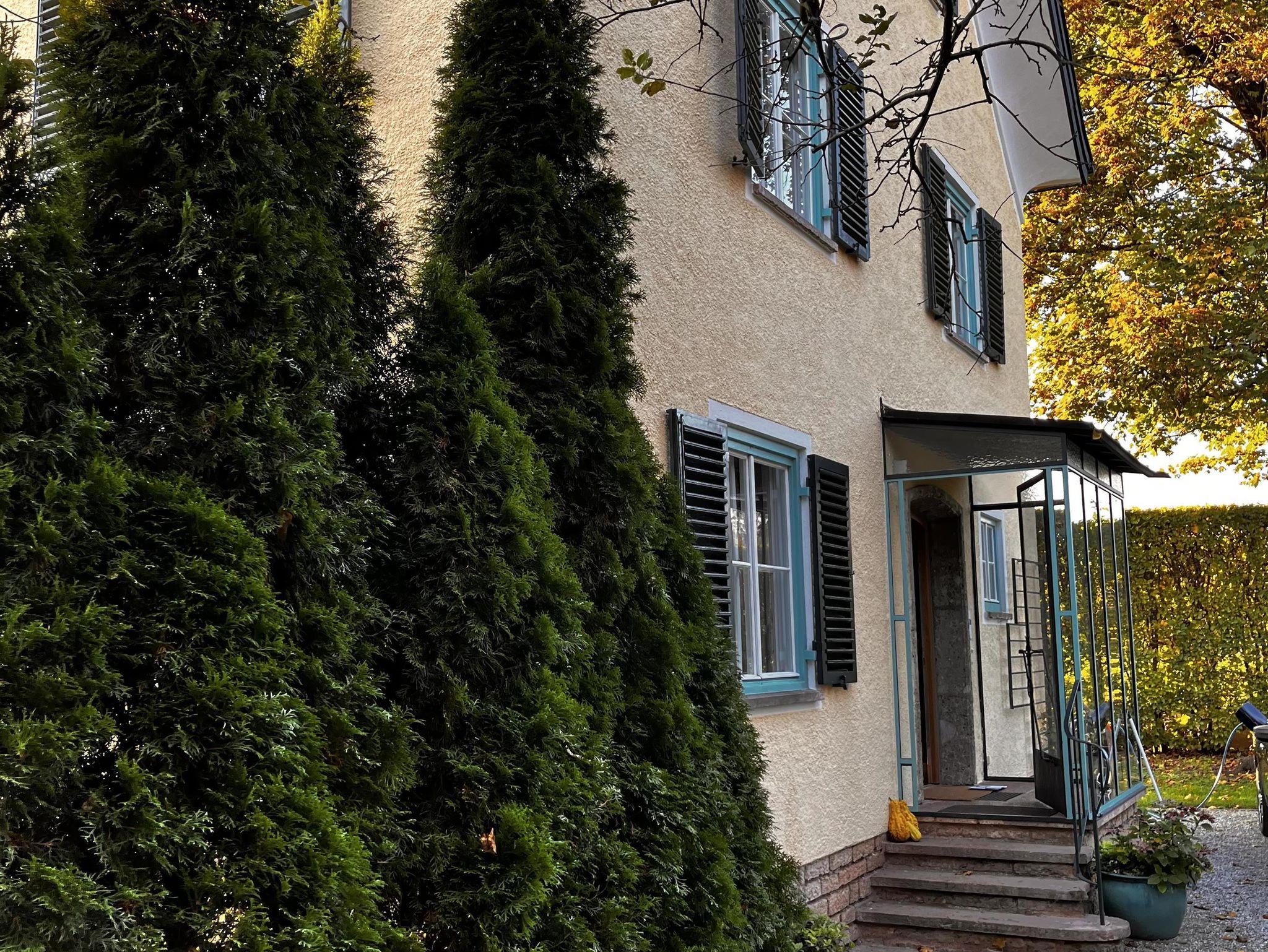 Alle Räume haben eine wunderbare Aussicht auf den großen Garten der Villa und auf die Alpen.
