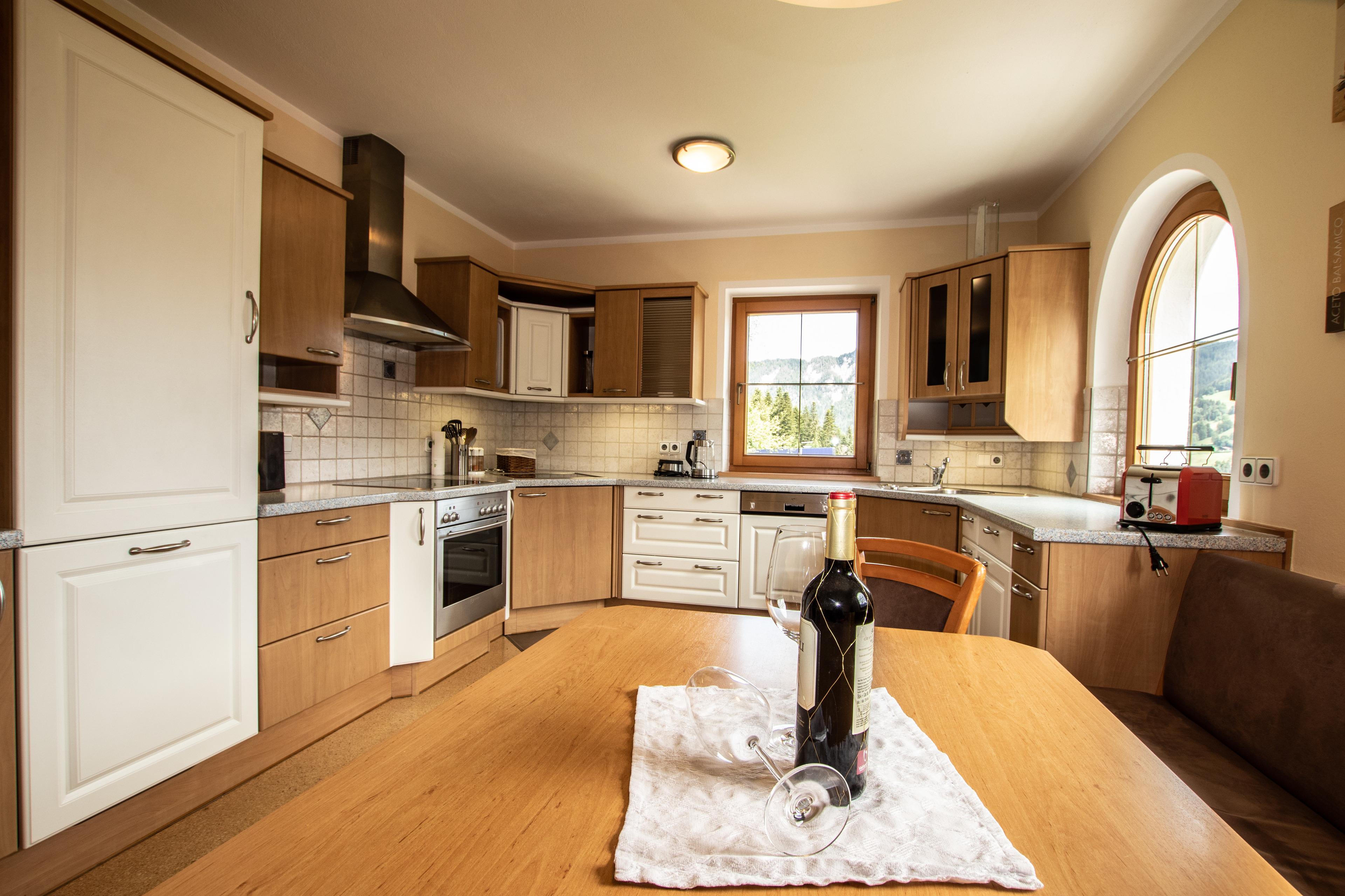 4-Zimmer-Wohnung ca. 90 m² im 1. Stock. Wohnung bis 6 Personen. Wohn-/Esszimmer mit großem Wohnzimmertisch und Eckbank, Sat-TV, DVD. Ausgang zum überdachten Balkon mit Sitzecke. 2 Zimmer mit 1 Doppelbett. 1 Zimmer mit 1 Etagenbetten für 2 Personen. Küche mit (Backofen, Geschirrspüler, Cerankochfeld 4 Platten, Tiefkühlfach, Filter Tabs-Kaffeemaschine) Esstisch mit Eckbank und 3 Stühlen.. Sep. WC, Bad/Dusche/WC, Doppelwaschbecken. Fußbodenheizung. Balkon mit Balkonmöbel und Bergblick.