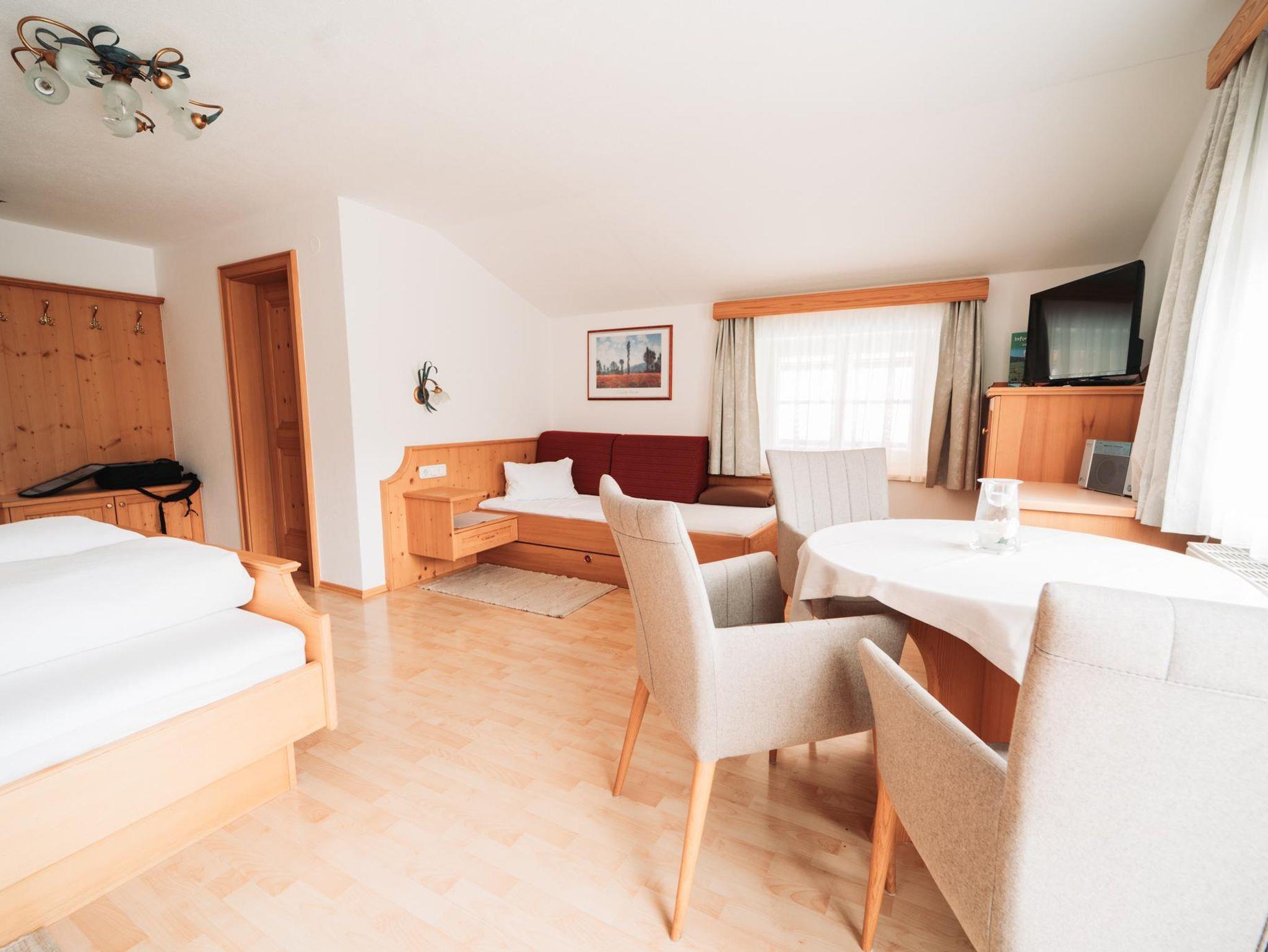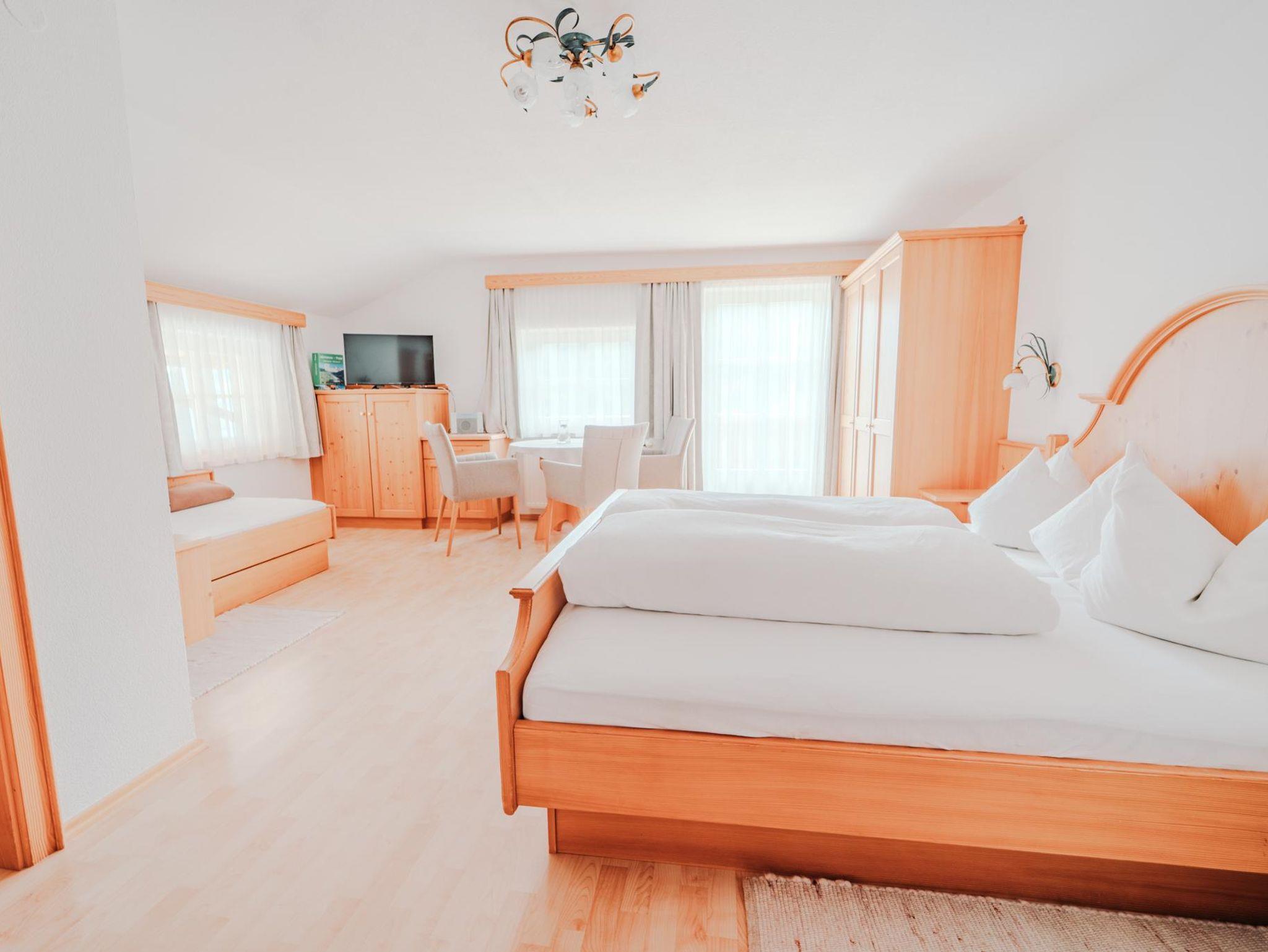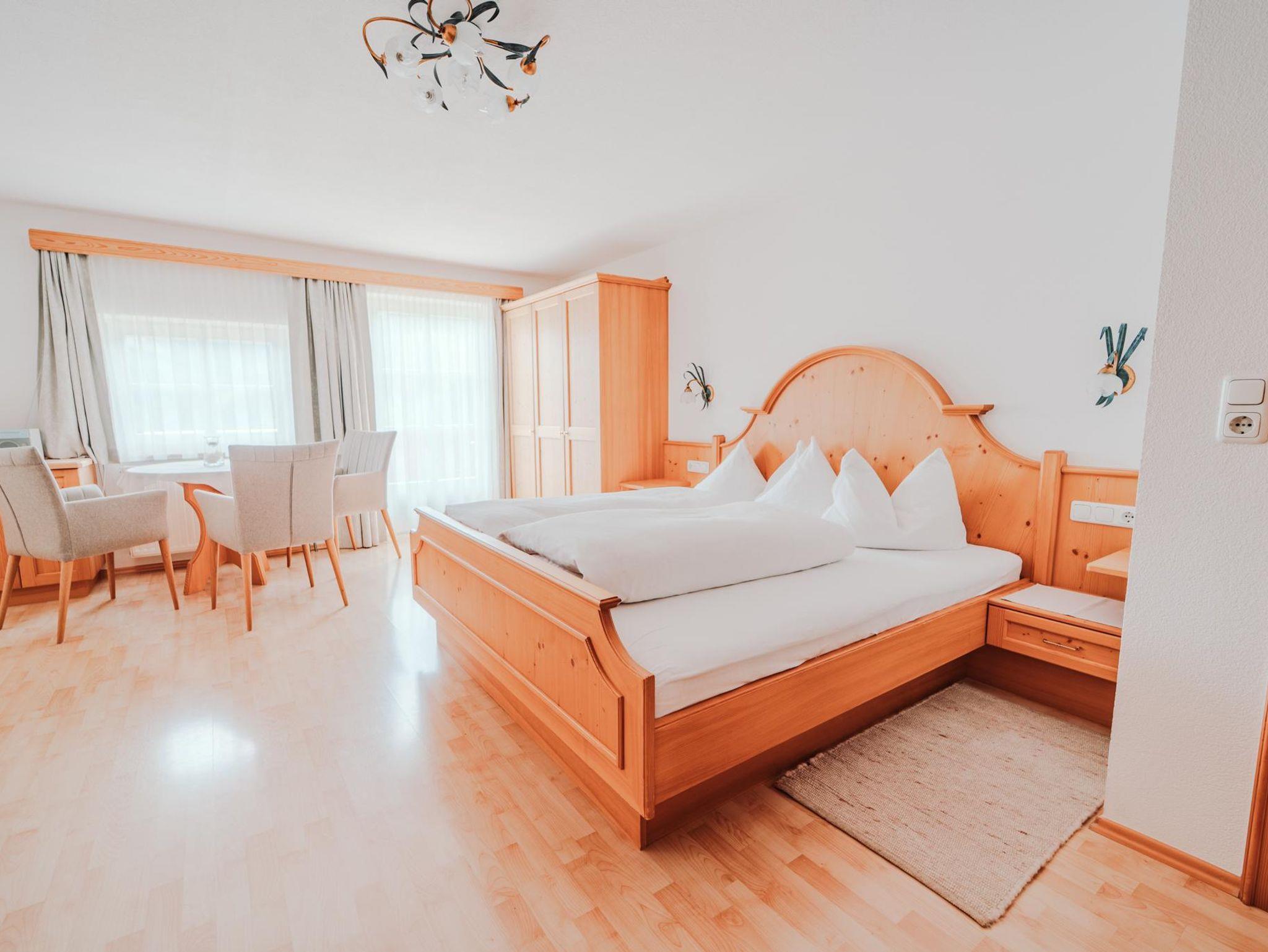 Dieses Zimmer ist ca. 30 m² groß, liegt südseitig und verfügt über einen Balkon, von dem Sie einen wunderbaren Ausblick auf unsere Bergwelt haben. Dusche, WC und Sat-TV sind natürlich vorhanden.