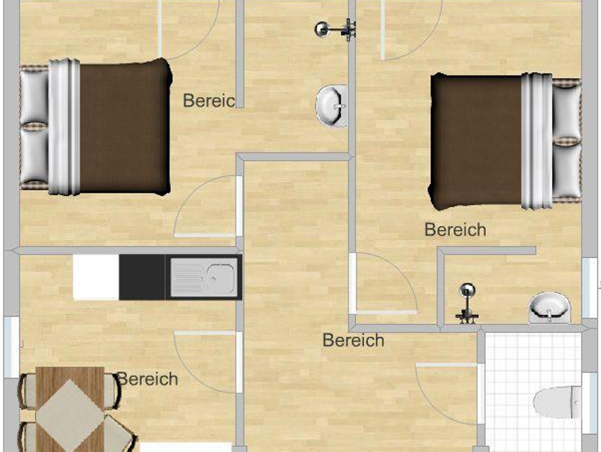 Geräumige Ferienwohnung für bis zu 6 Personen, Dusche, WC, Balkon, Sat-TV, WLAN, Wohnküche voll ausgestattet.
