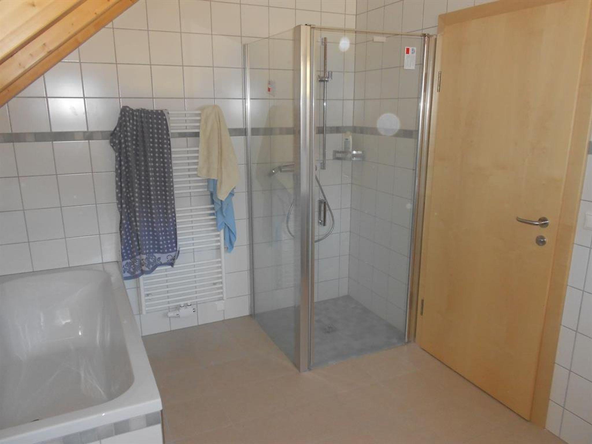 1 Badezimmer mit Dusche und Badewanne