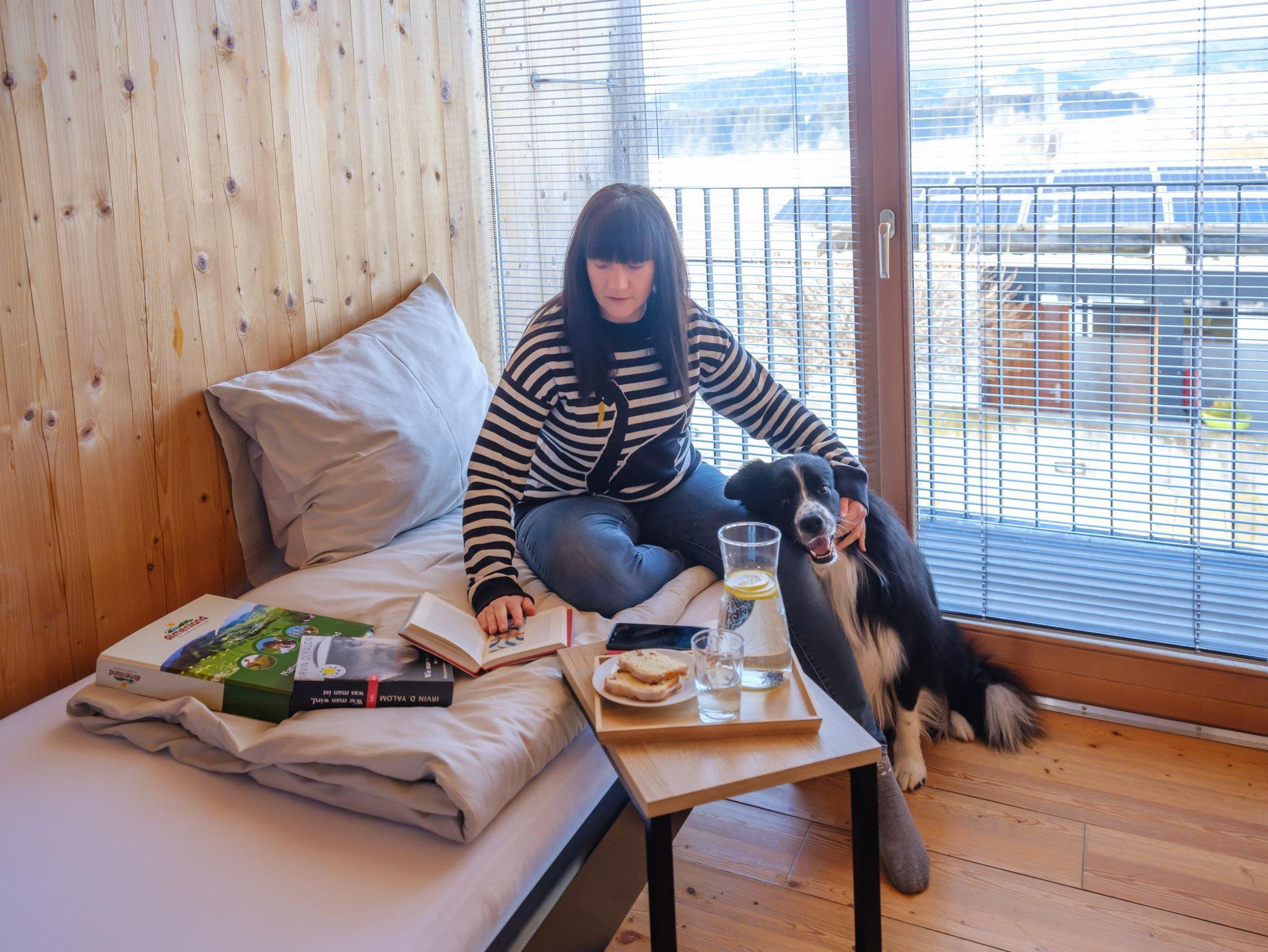 Das Einzelzimmer ist mit einem Einzelbett, einer Dusche und einem extra WC sowie mit einer kleinen Sitzkoje mit Tisch und Sessel ausgestattet. Zudem gibt es einen Balkon der einen herrlichen Blick auf den Passailer See bietet.