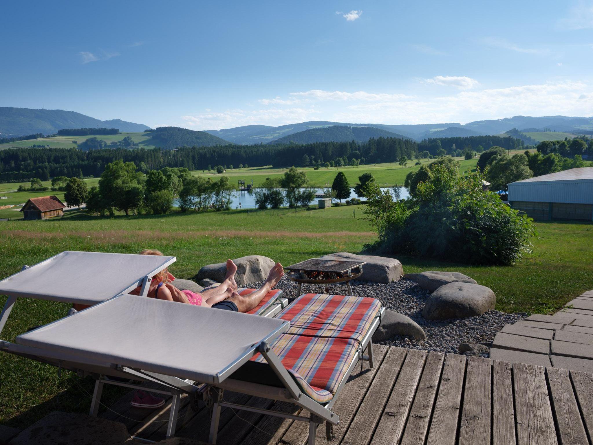 Am Balkon bekommt man einen herrlichen Blick über das Freizeitareal und dem Passailer See sowie die traumhafte Almkulisse im Hintergrund.