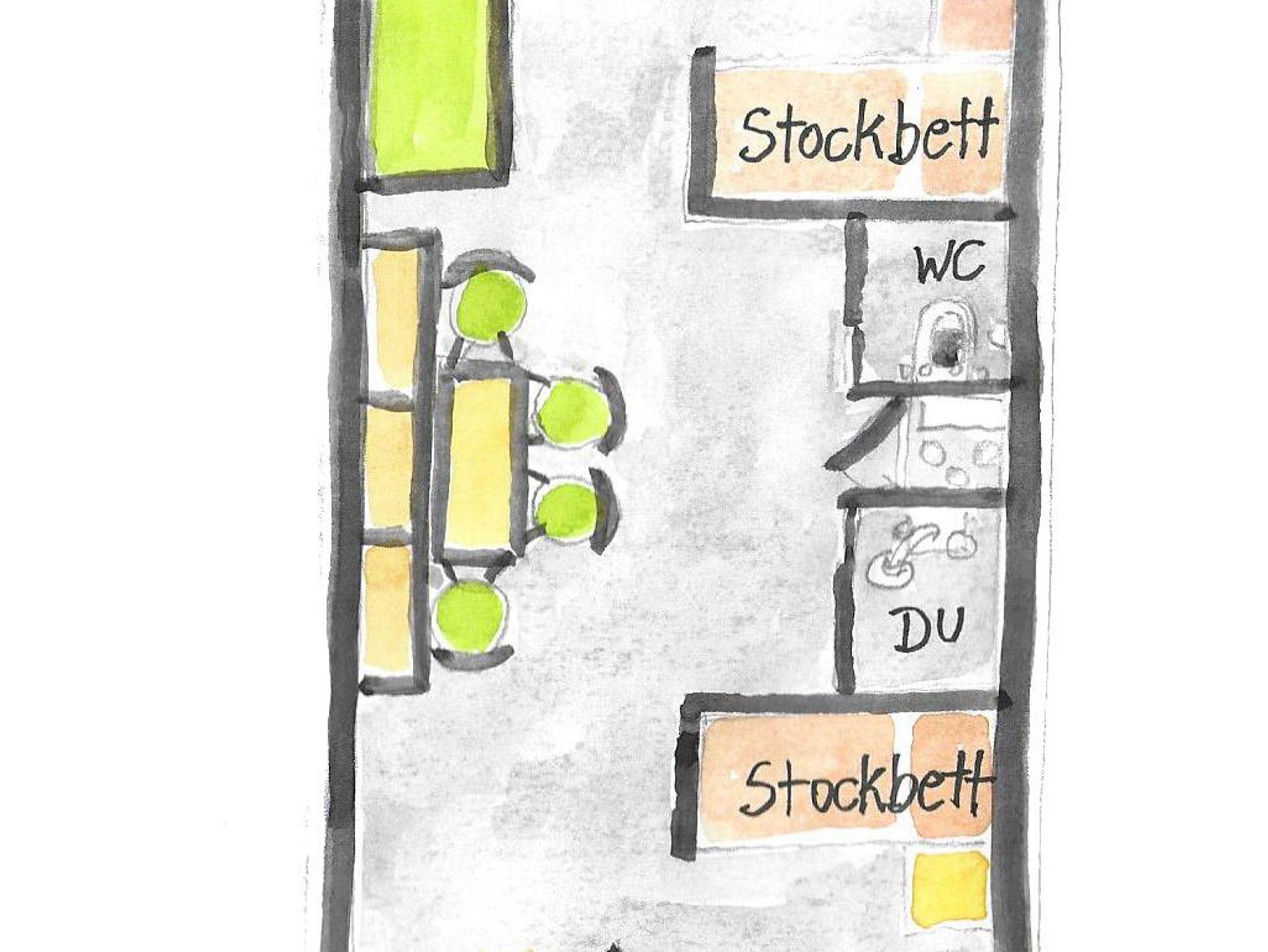 Darin befindet sich ein Schlafzimmer mit Doppelbett, sowie ein zweites Schlafzimmer mit 2 Stockbetten (4 Personen).