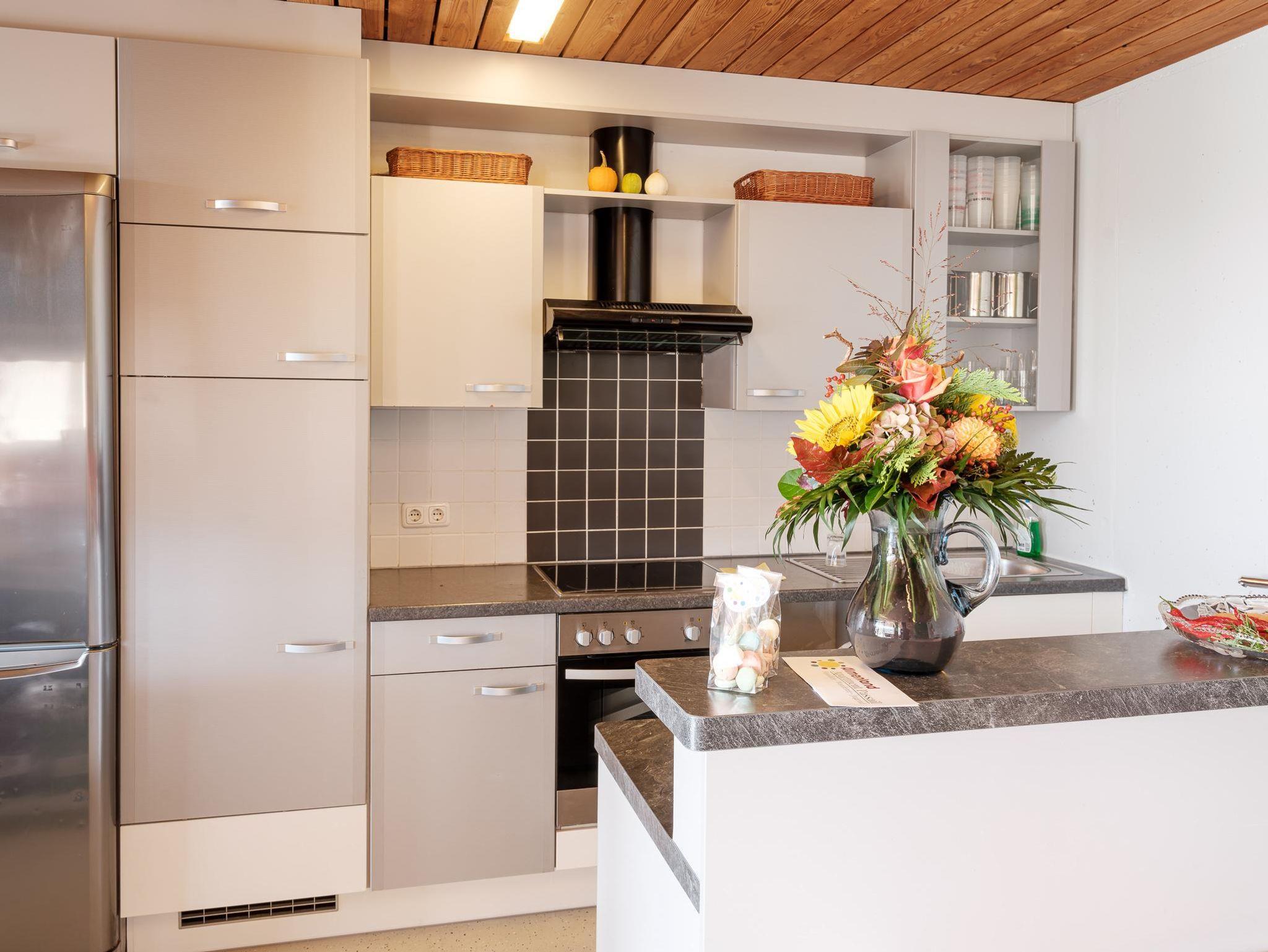 * Aufenthaltsraum mit 60 Sitzplätzen, ausgestatteter Küche (E-Herd, Geschirrspüler, Kühl- und Gefrierschränke, Mikrowelle, Geschirr), Fernseher, Tischtennistisch, Tischfußball zur freien Benützung.