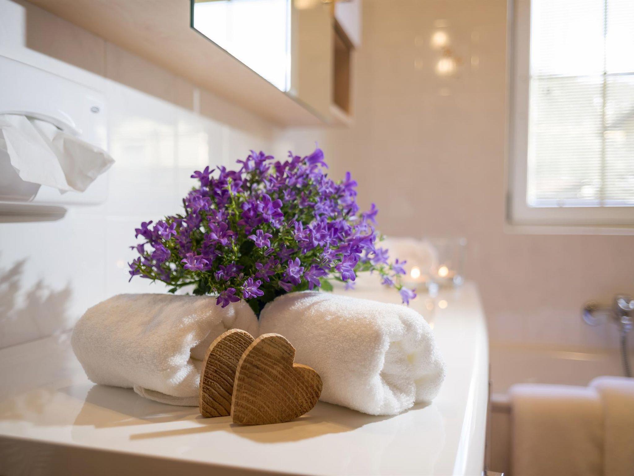 Unser Appartementhaus befindet sich in traumhafter, sonniger Lage und bietet großzügig und komfortabel ausgestattete Ferienwohnungen für 2 bis 6 Personen in einer Größe von 45 bis 55m². Alle Appartements verfügen über einen Balkon bzw. Garten, Sat-TV, Internetzugang (Wifi), Telefon, Safe, Föhn, Mikrowelle, Geschirrspüler, E-Herd, Backofen, Wasserkocher, Kaffeemaschine sowie eine komplette Wäsche- und Geschirrausstattung. Pro Wohnung gibt es einen Tiefgaragenstellplatz. Wir bieten einen täglichen Brötchenservice an.