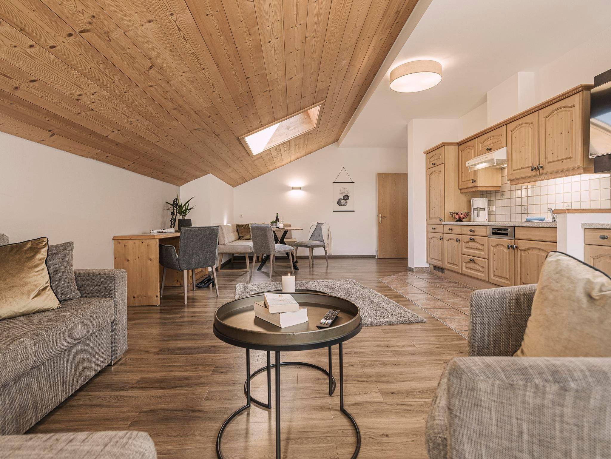 Alle Appartements bieten Wohnkomfort mit 4-Sterne-Anspruch und sind behaglich, stilvoll eingerichtet. Die Wohnungen sind ausgestattet mit einem großen Wohnraum mit Essecke, einer komplett ausgestatteten Küchenzeile (E-Herd, Mikrowelle, Kühlschrank, Geschirrspüler, Teekocher, Kaffeemaschine, Toaster, Geschirr etc.), einem Badezimmer mit Dusche, teils separates WC, Flat-TV, SAT, Telefon, CD-Player, Radio, Safe sowie einem Balkon oder Terrase teils mit Panoramablick.