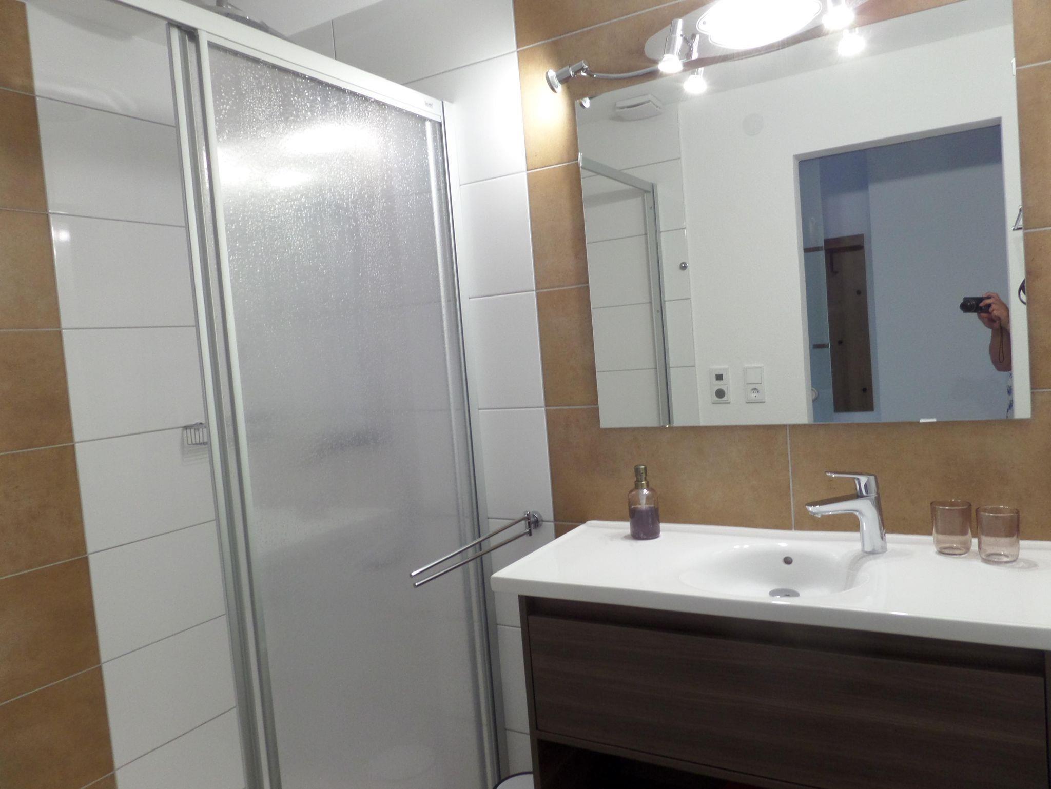 Das Appartement ist ideal für Familien. Es besteht aus einem Vorraum, Dusche und WC sind getrennt, einem Schlafzimmer mit Doppelbett und einem weiteren kleinem Schlafzimmer für die Kinder mit einem Bett in der Größe von 140 x 200 cm.