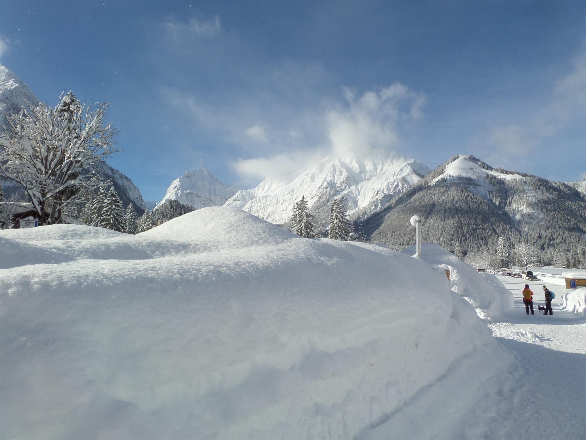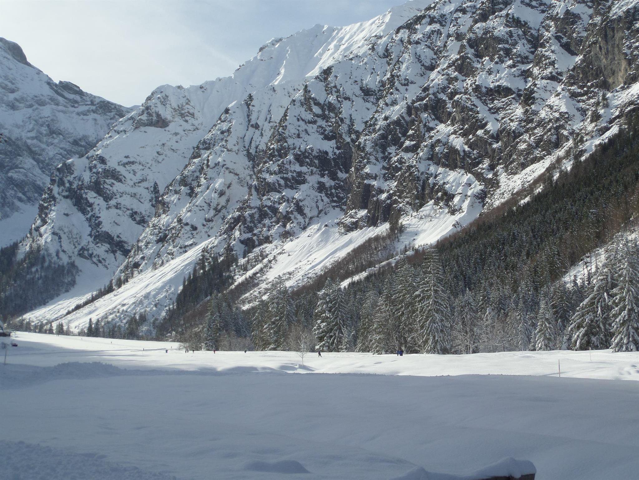 Die Winterwanderwege beginnen vor dem Haus. Der Loipeneinstieg ist gegenüber. Die Karwendelbergbahn in Sichtnähe. Wandern, Langlaufen, Schifahren, Rodeln, Schneeschuhwandern, Pferdeschlitten fahren alles ist möglich.