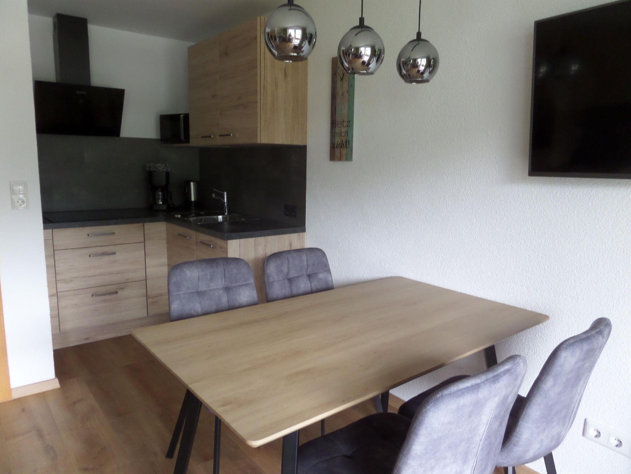 In der Wohnküche ist eine schöne neue Küchenzeile mit Induktionsherd, Backofen, Geschirrspüler, Filteraffeemaschine, Wasserkocher, Mikrowelle, Brottoaster und Gesschirrausstattung. Gratis Wifi, Sat-TV und Radio mit CD sind selbstverständlich vorhanden.