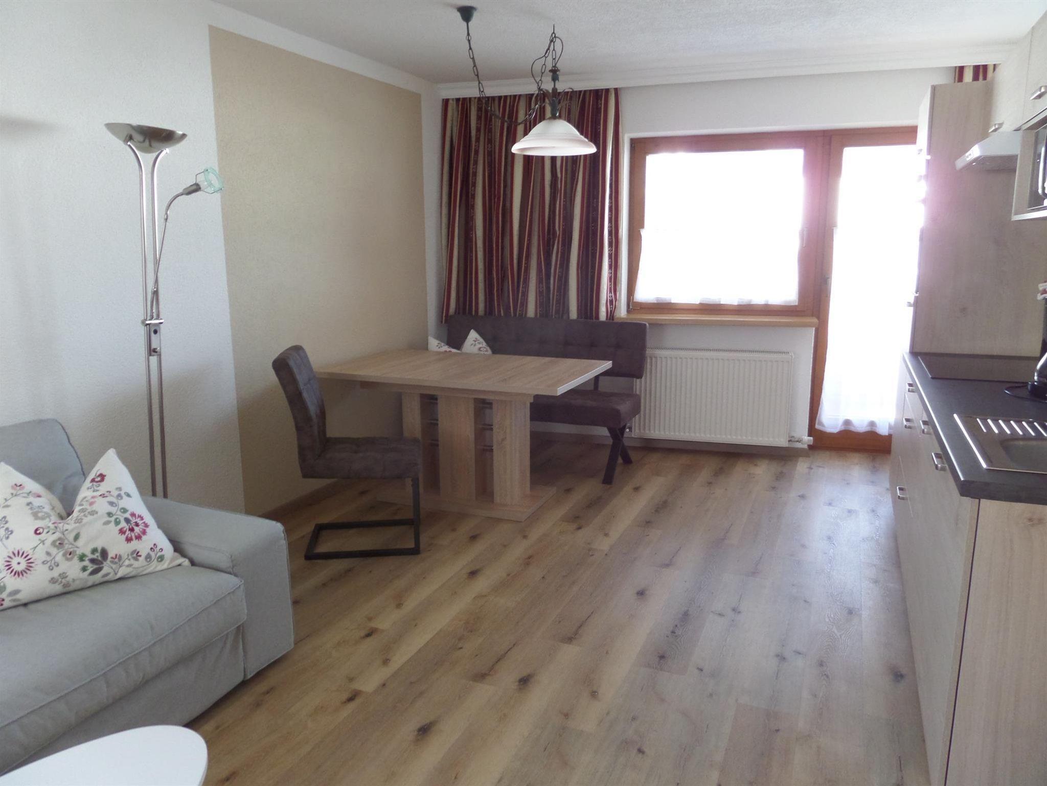 Die Appartements haben eine Wohnküche mit Küchenzeile, großem Esstisch und einer gemütlichen Couch. Die Couch kann ausgezogen werden. Im Schlafzimmer ist ein Doppelbett. Im Schrank ist ein Tresor.
