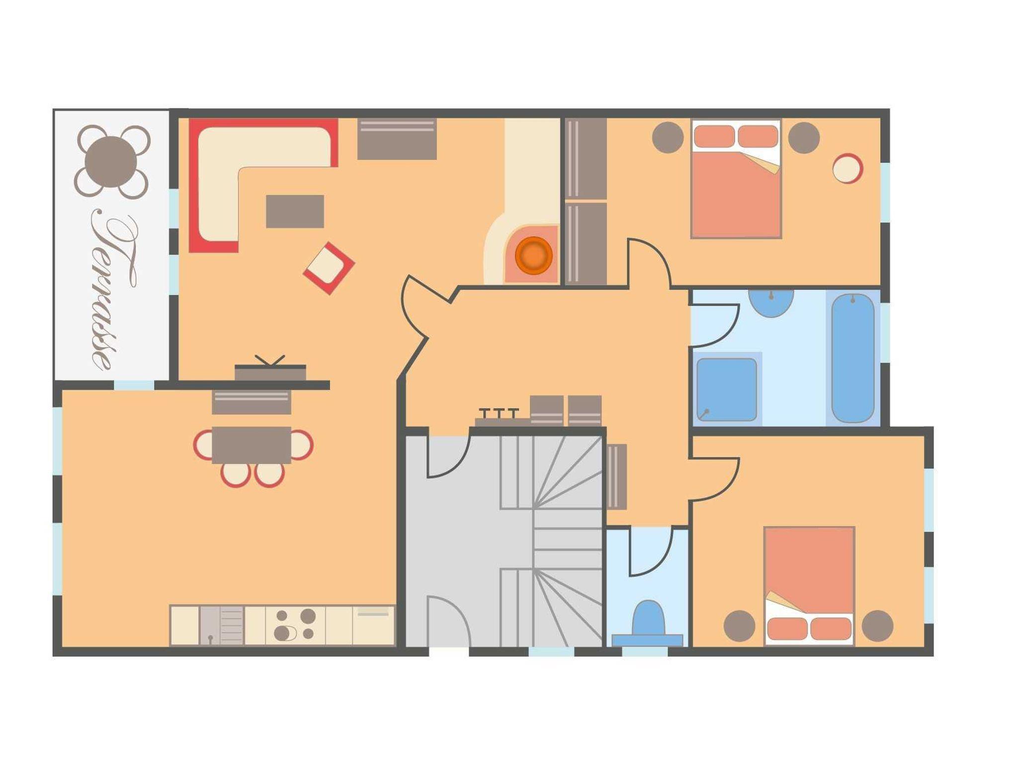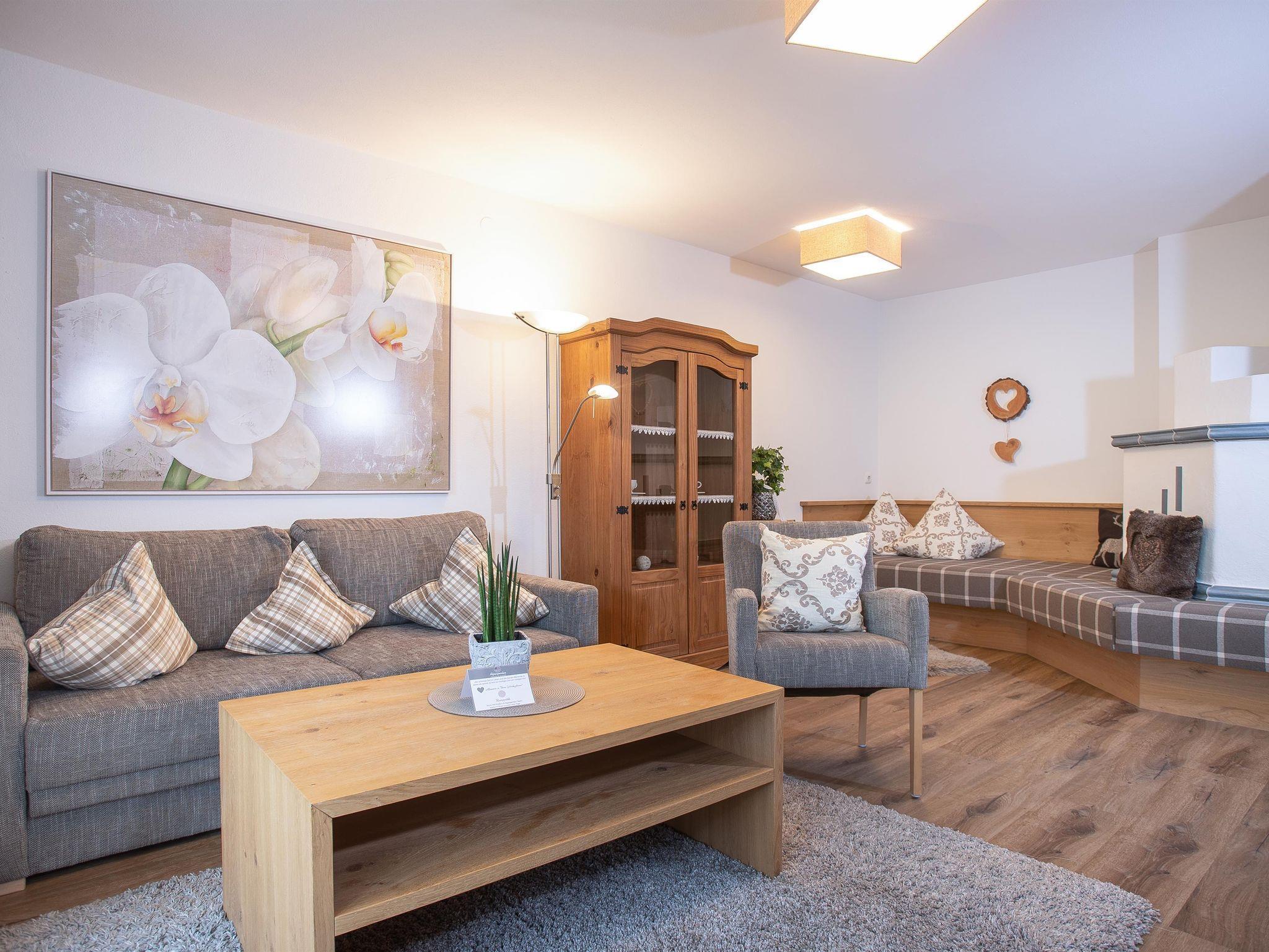 Neu renovierte Ferienwohnung für 4 bis 6 Personen im alpinen Stil mit 2 Schlafzimmern, 1 Bad mit Dusche & Badewanne, separater Toilette, gemütlichem Wohnraum mit Sitzgruppe und Kachelofen, komplett ausgestatteter Küche mit Essecke sowie einer Terrasse mit kleinem Garten.
