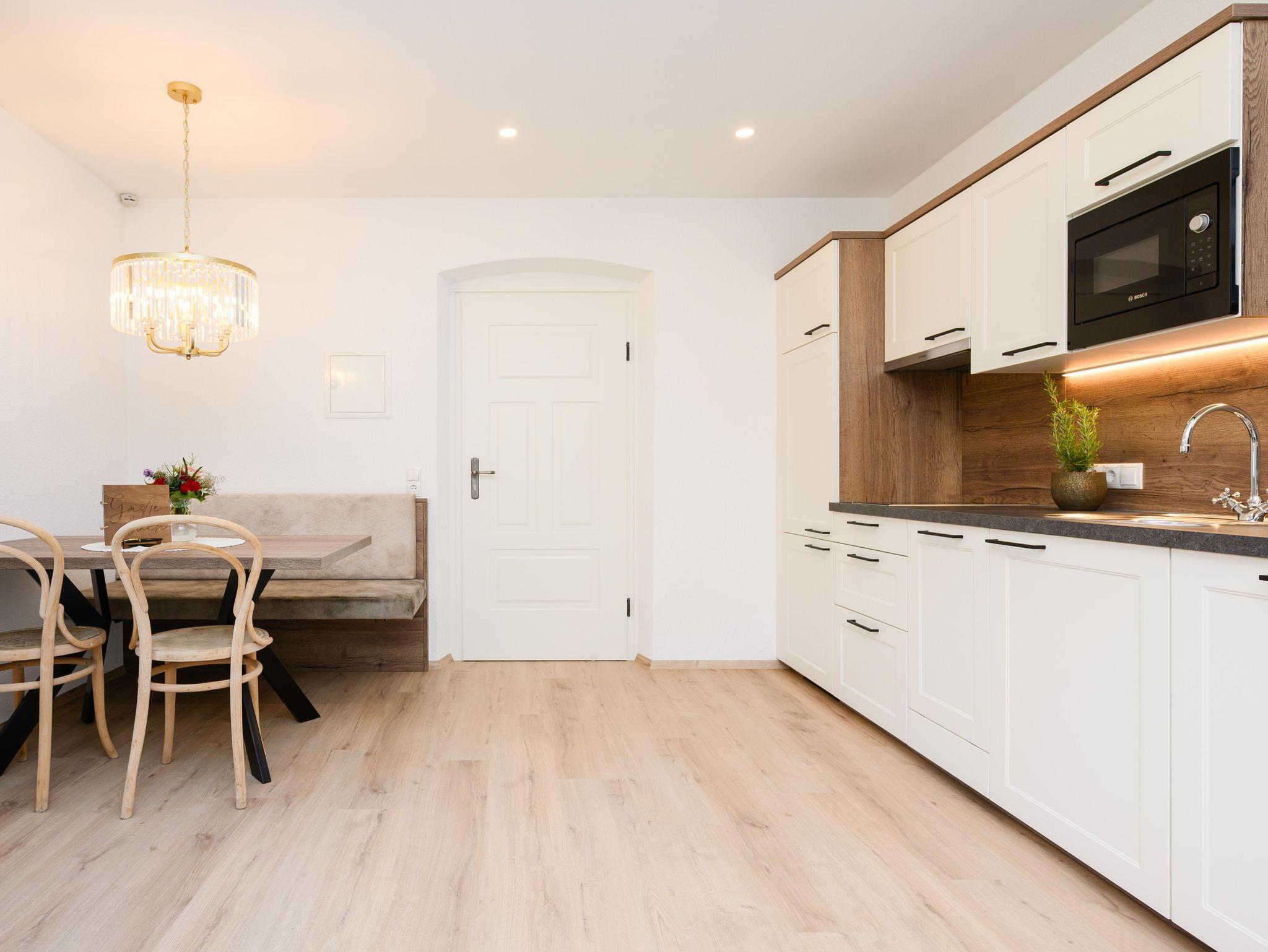 Ferienwohnung 1958 Die Ferienwohnung 1958 liegt auf erster Etage und erstreckt sich über 45 Quadratmeter mit Eingangsbereich. Sie bietet einen wunderschönen Ausblick über die Wagnerwiese zum türkisblau schimmernden Achensee. Die Ferienwohnung verfügt über ein idyllisches Schlafzimmer mit einem Eckbalkon nach Westen und großartiger Aussicht auf die rundum liegende Bergwelt. Das wunderschön proportionierte Badezimmer umfasst eine geräumige Dusche und einen Waschtisch. Die Toilette befindet sich separat. Der großzügige Wohnsalon umfasst eine elegante Villenküche mit gemütlichen Essbereich, sowie ein bequemes Sofabett zum kuscheln.