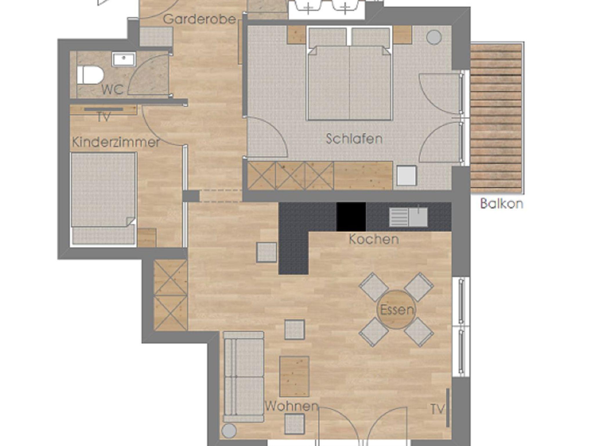 Das Appartement Zwölferkopf bietet 2 Schlafzimmer, einen großzügigen Wohnbereich mit Doppelcouch, Küchenzeile, Badewanne, Dusche, WC getrennt, Föhn, Kosmetikspiegel, Flat-TV, Radio, Telefon, Safe, WLAN und großzügige Südterrasse, Haustiere nur auf Anfrage