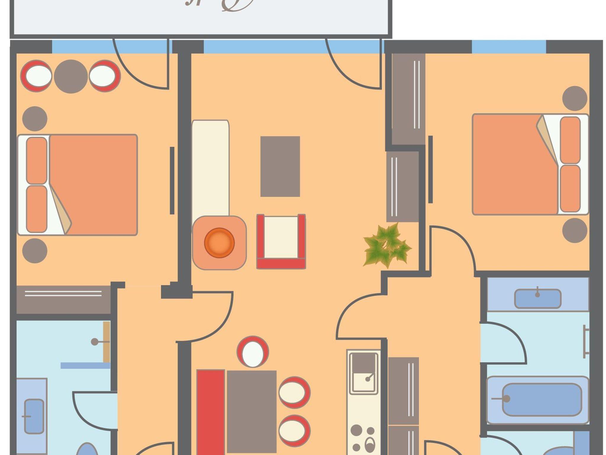 2 Bäder (1 Bad mit Dusche & WC, 1 Bad mit Dusche und separates WC), Balkon