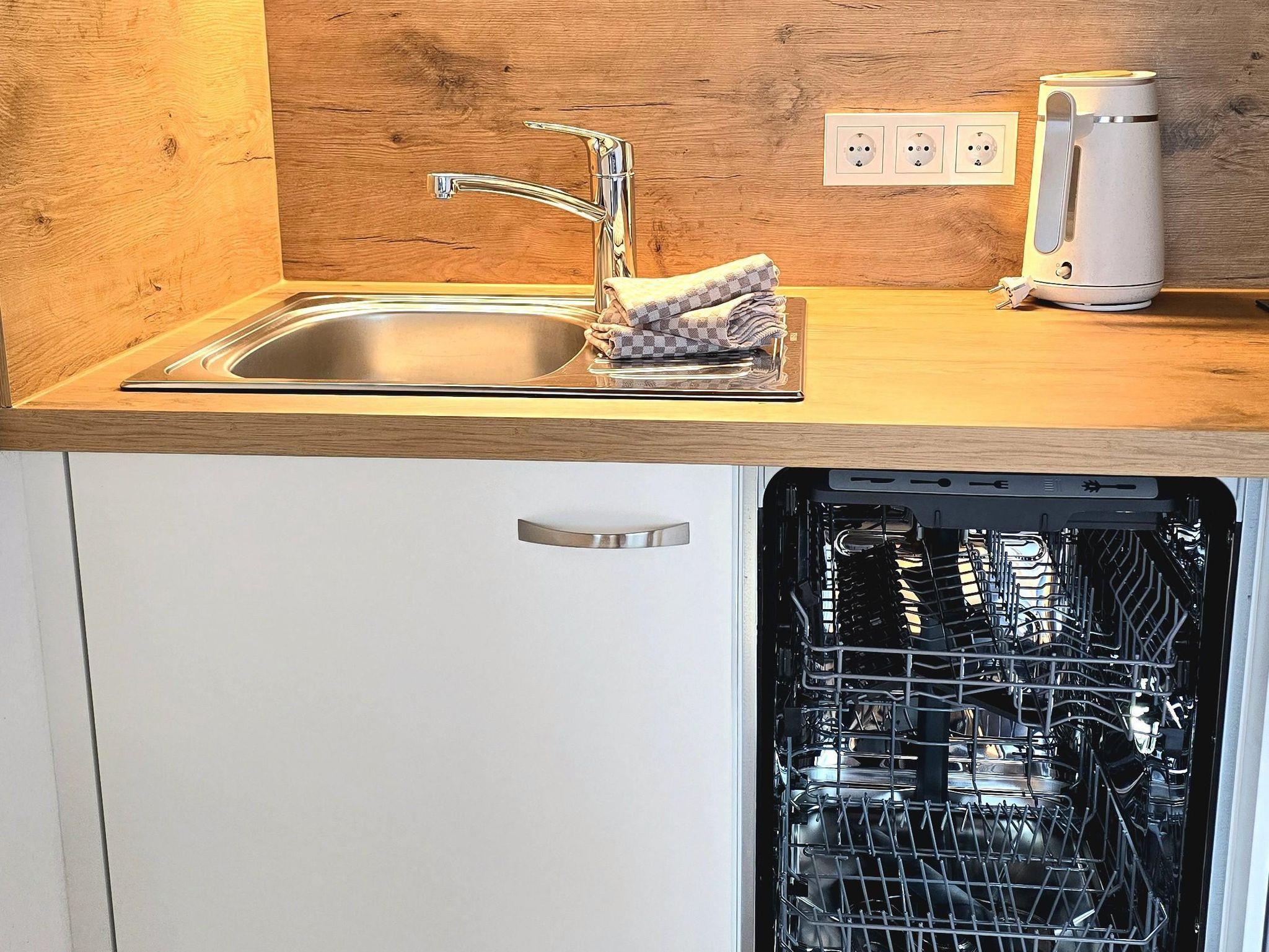 • Einer voll ausgestatteten Küchenzeile mit allen wichtigen Geräten und Utensilien.