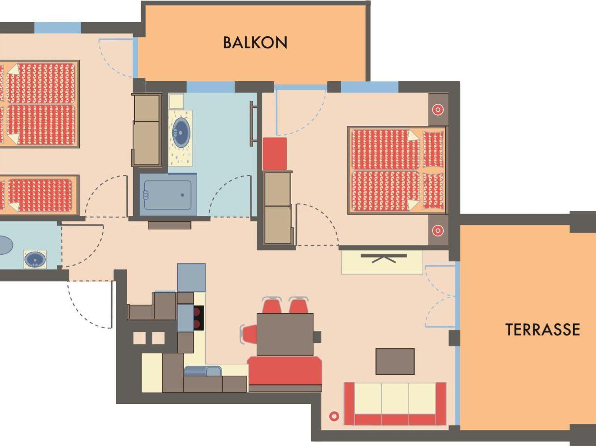 • je 1-2 Schlafzimmer, 1-2 Bäder mit Dusche & WC