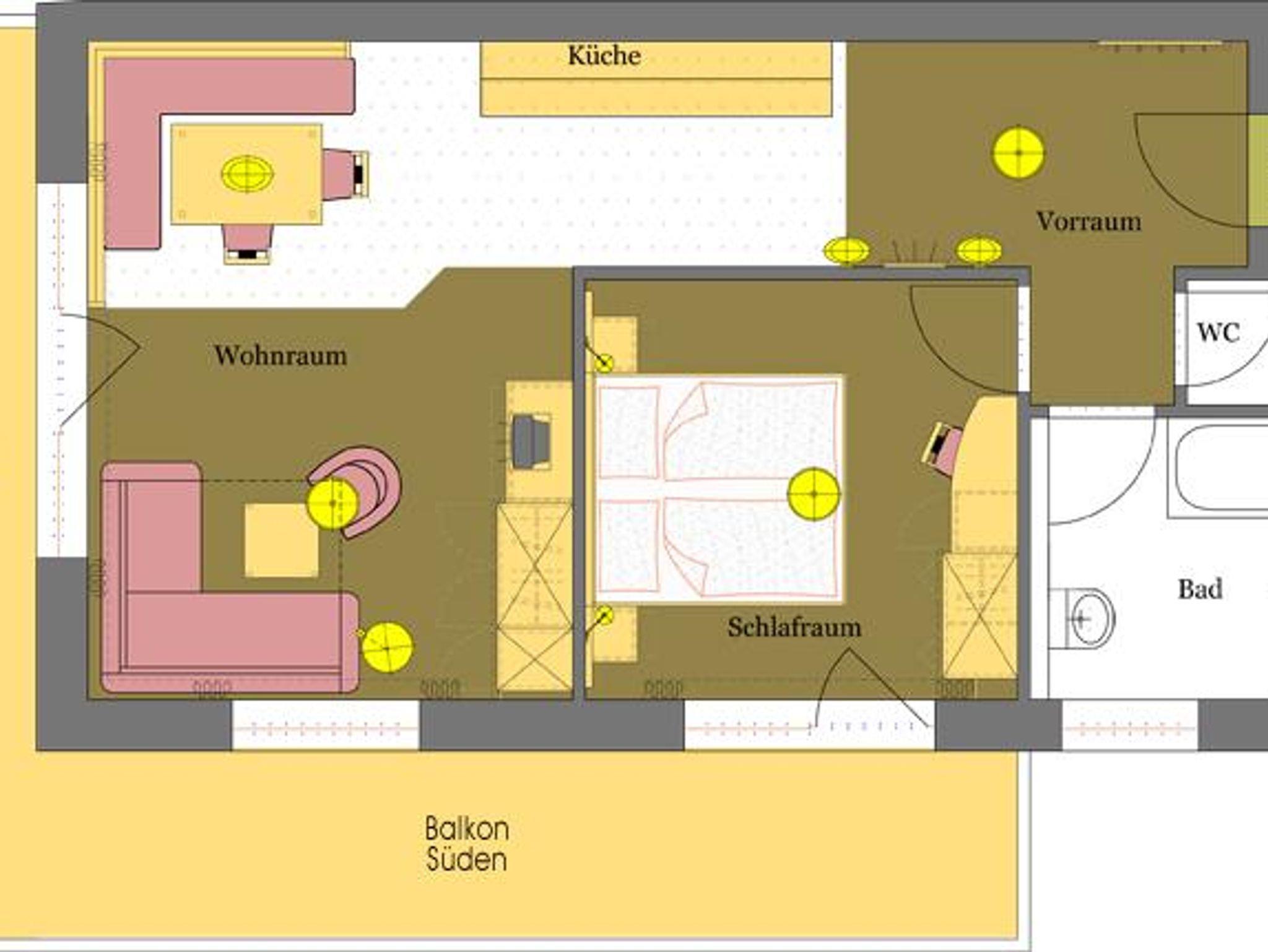 Appartement mit großem Balkon nach Süden und Westen im 1. Stock