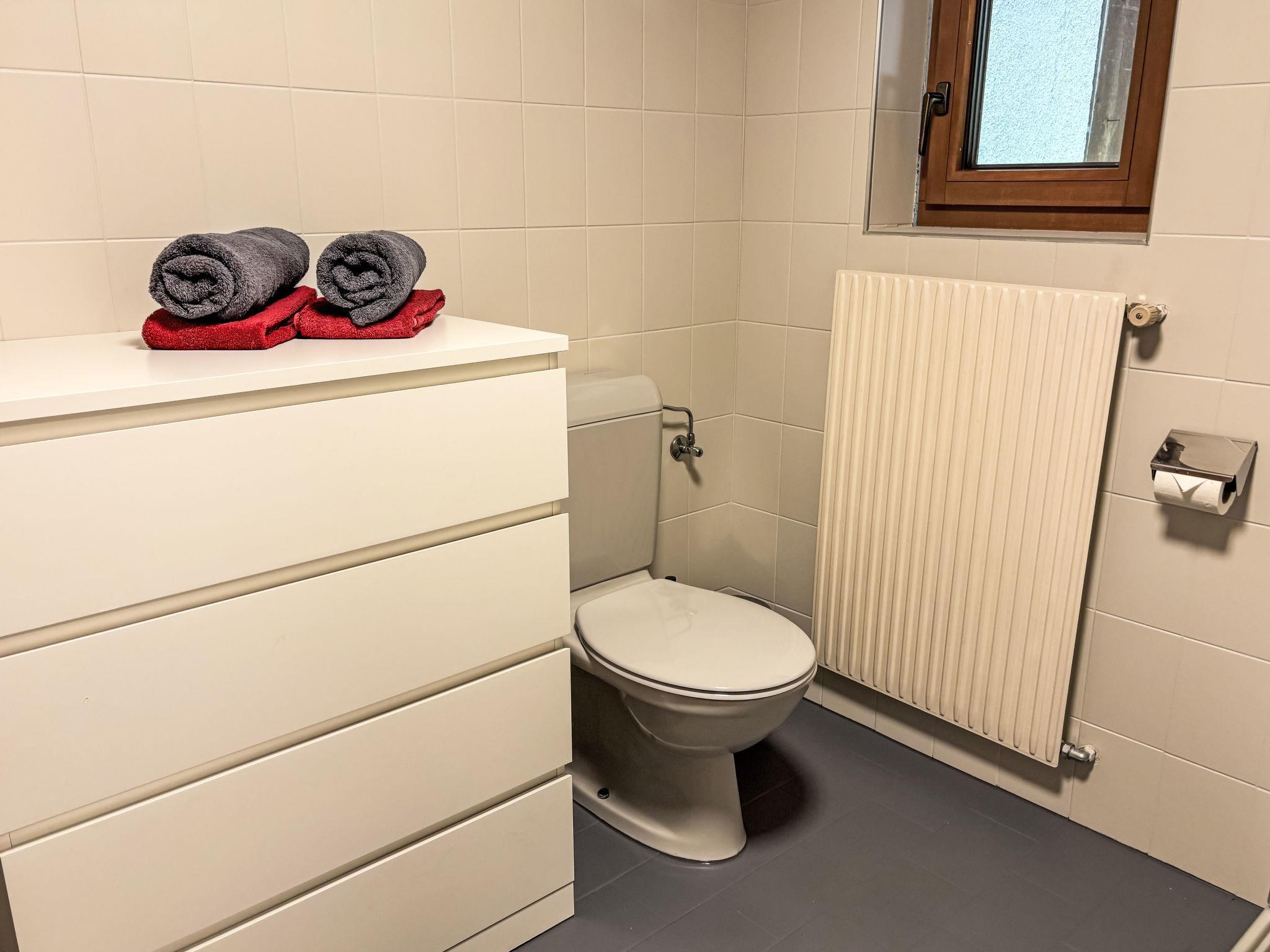 "3 Zimmer", 3-room apartment 65 m2 on 1st floor. Modern and cosy furnishings: living/sleeping room with 1 sofabed and TV. 1 double bedroom. 1 children's room with 2 beds. Open kitchen (oven, dishwasher, 4 ceramic glass hob hotplates, toaster, kettle, microwave, electric coffee machine). Shower/WC. Wood heating. Beautiful view of the mountains. Facilities: Internet (WiFi, free). Please note: non-smokers only. Smoke alarm.