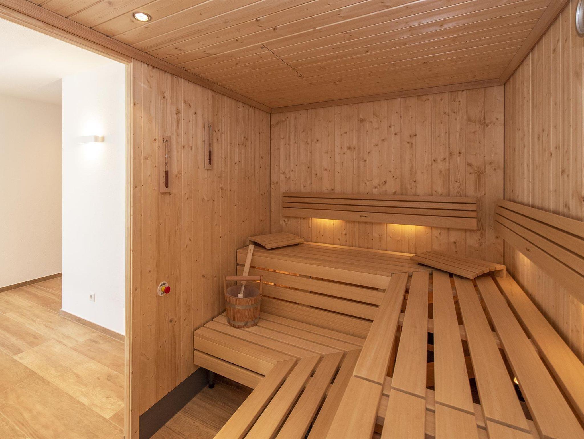 Das Spa beinhaltet eine Luxus Sauna, Duschgelegenheiten und direkten Zugang zum Außenbereich. Dies ist der perfekte Ort, um sich von einem anstrengenden Tag auf den gemütlichen Liegen zu erholen.