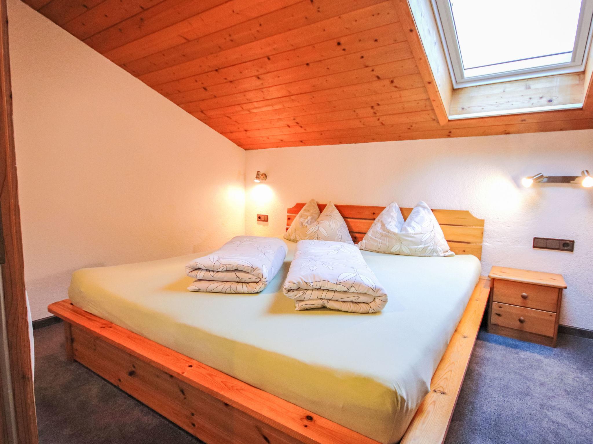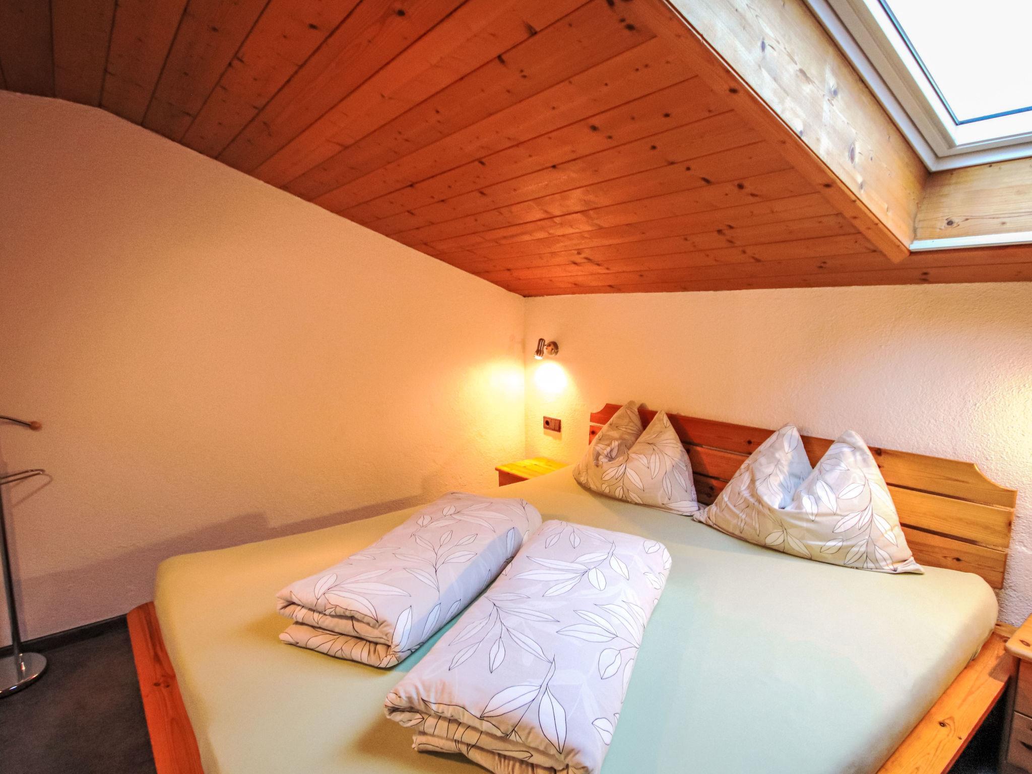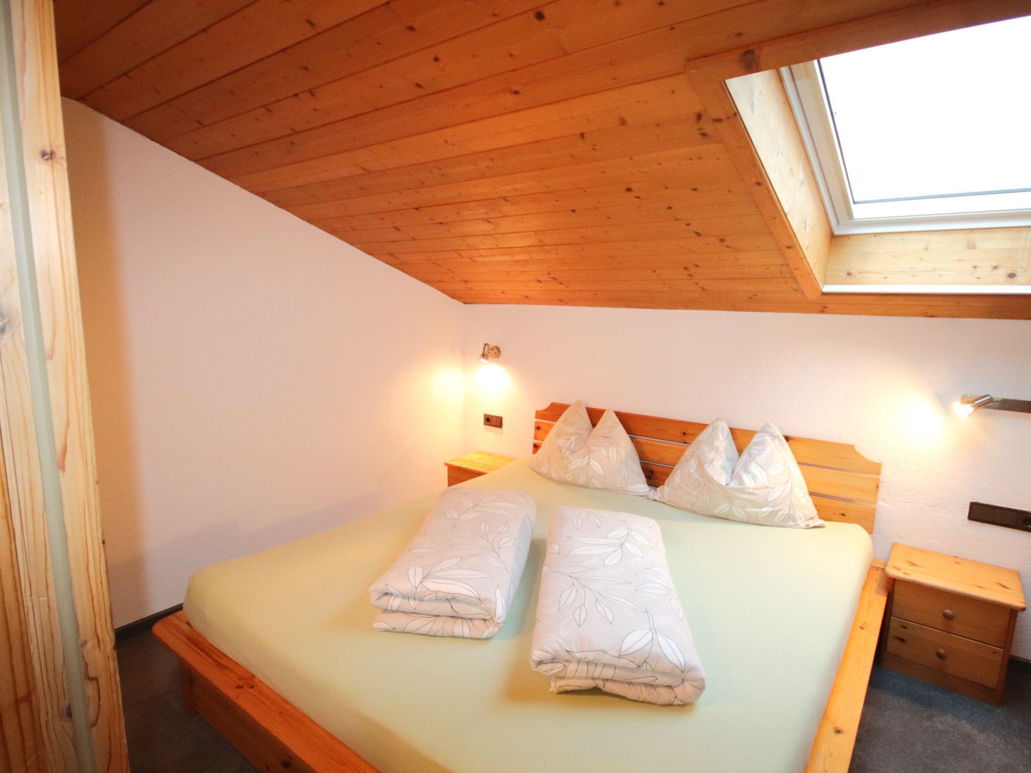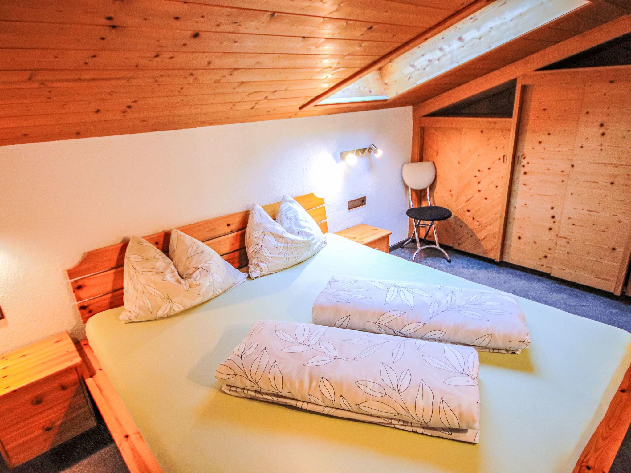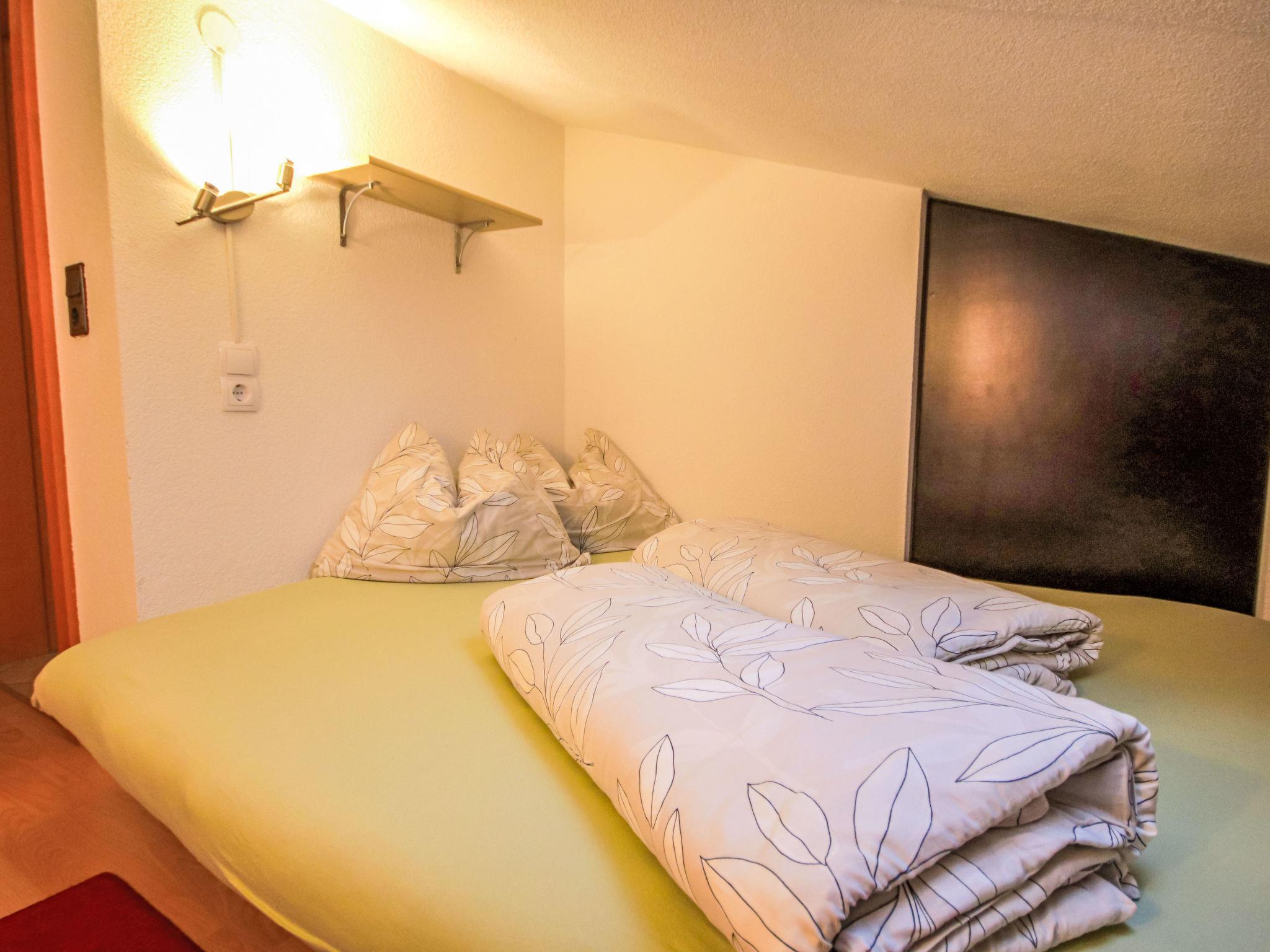 4-room apartment 65 m2, on the top floor. With sloping ceilings, tasteful furnishings: entrance hall. 1 double bedroom. 1 small room with 1 french bed (140 cm). 1 small room with 1 french bed (160 cm). Large living room with satellite TV and radio. Open kitchen (oven, dishwasher, 4 ceramic glass hob hotplates, microwave) with dining table. Bath/shower/WC. Box-room. View of the mountains. Facilities: Internet (WiFi, free). Please note: non-smokers only. Smoke alarm. One small room with double bed has a very low ceiling.