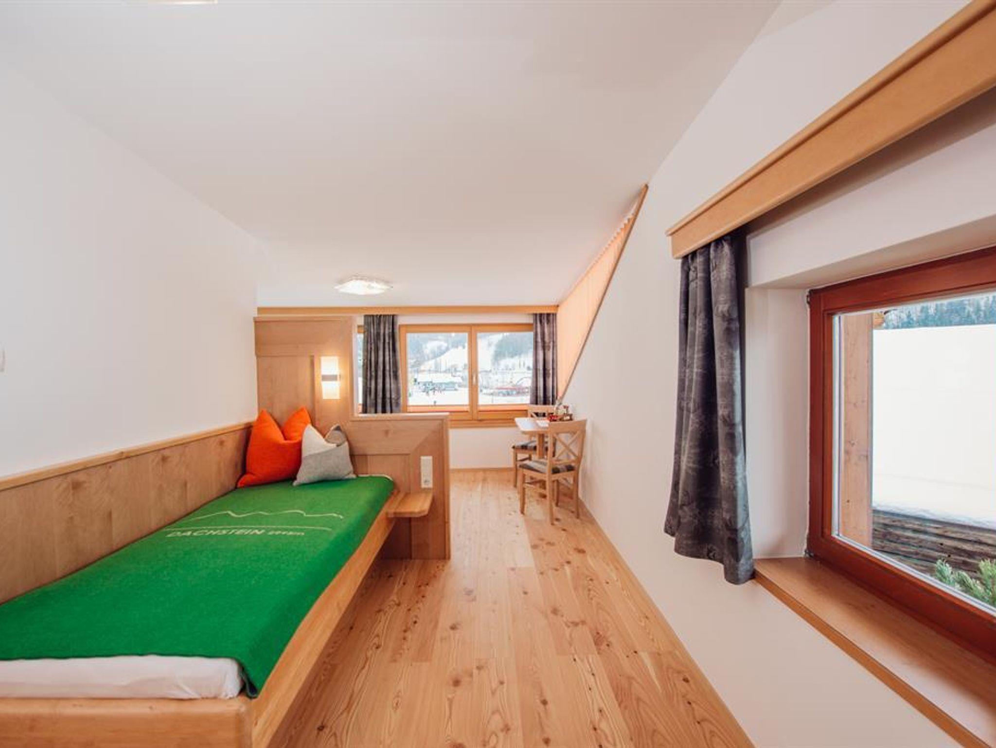 Schlafzimmer für 1-3 Pers. Dusche / WC, Haarföhn, großes Sichtfenster zum Dachstein