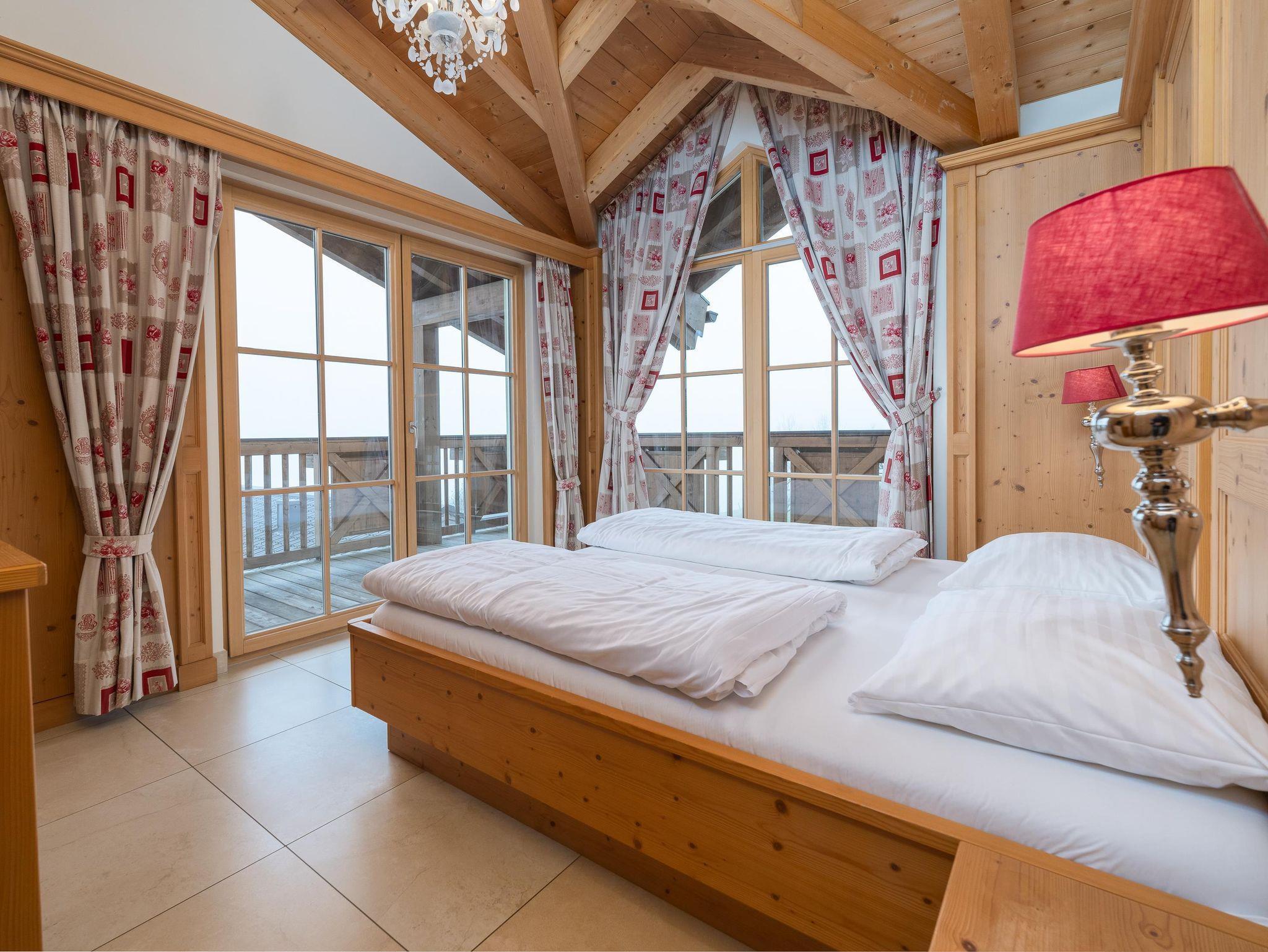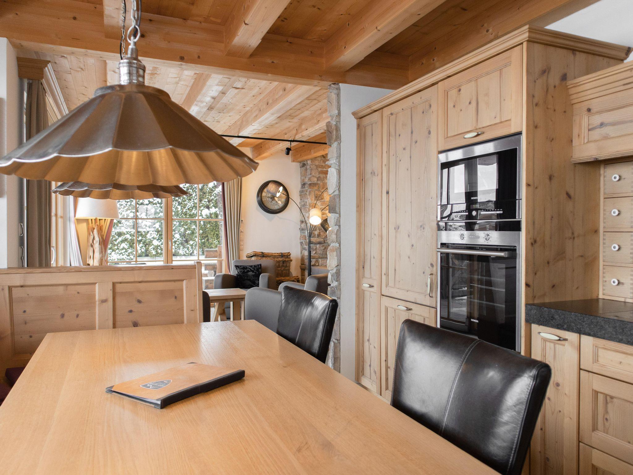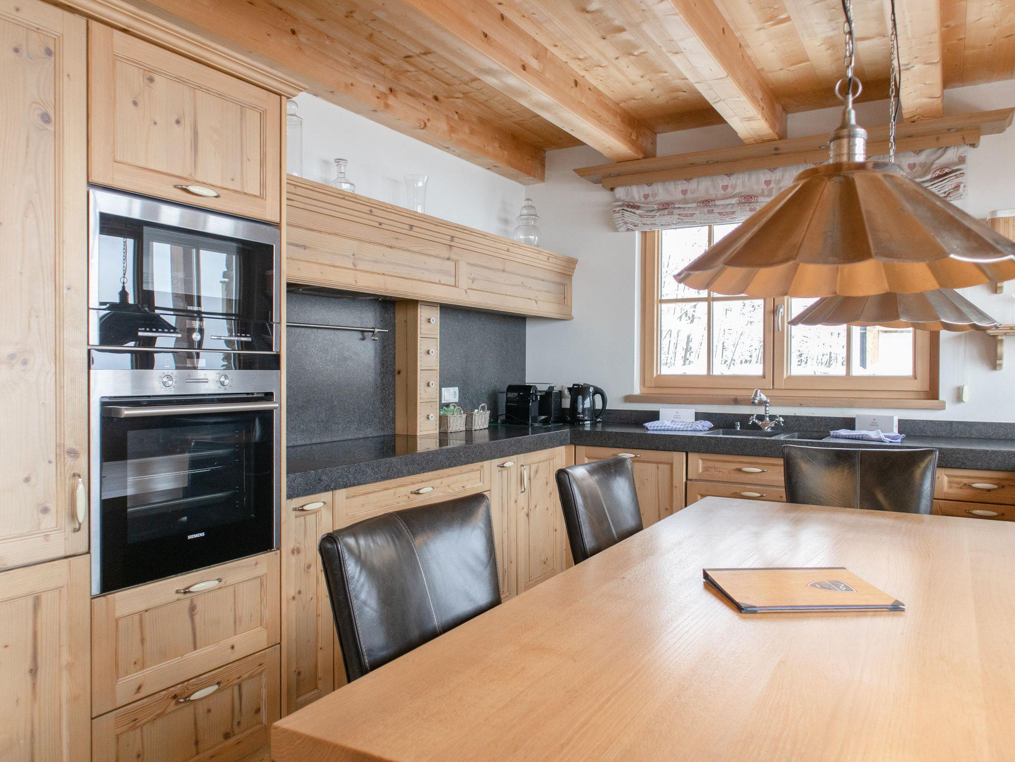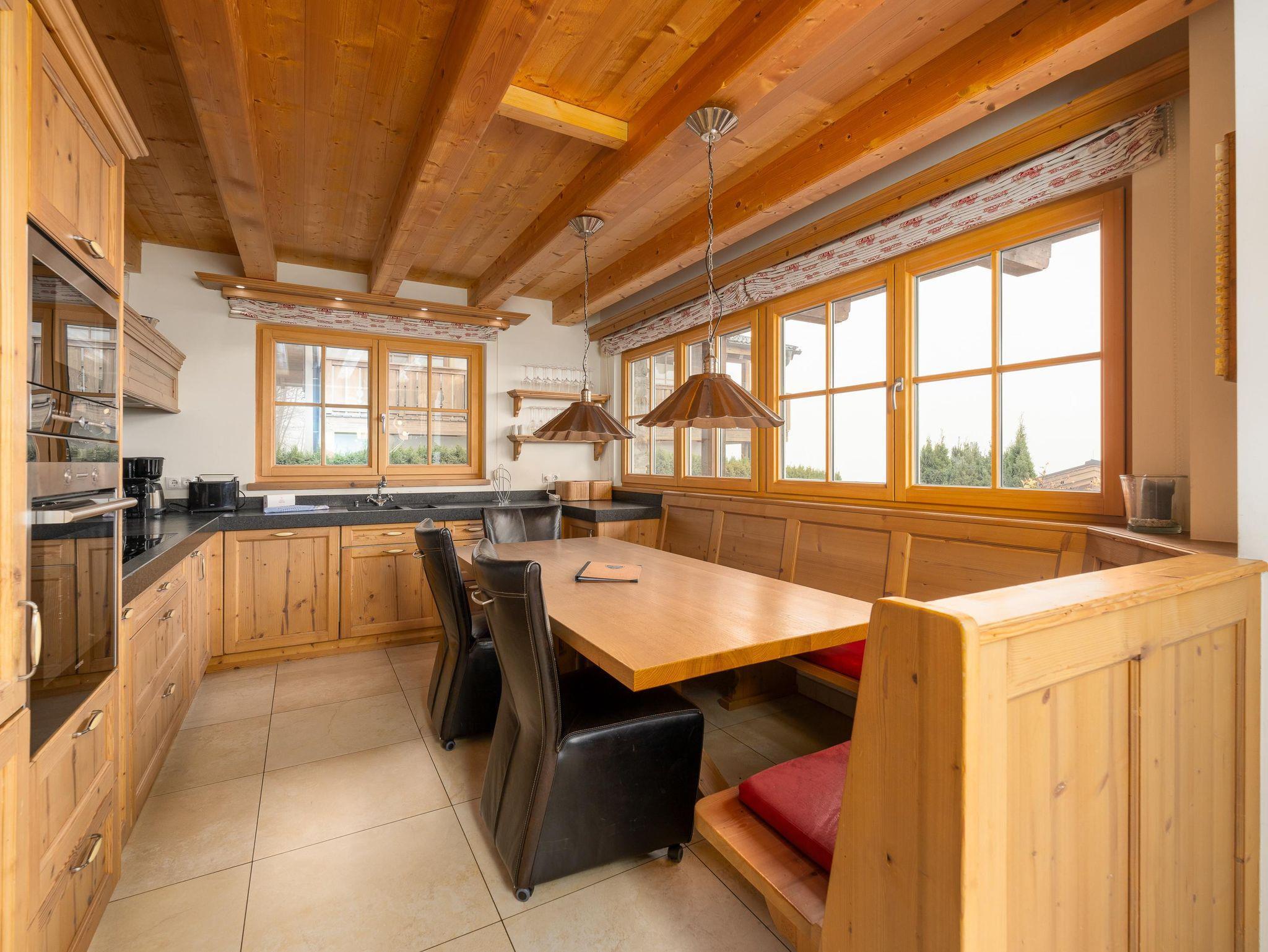 Dieser exklusive Urlaubstraum mit Landhausambiente vereint das typische österreichische Flair mit modernem Komfort. Die Wohnetage im Erdgeschoss besticht durch eine großzügige Essecke mit einer Holzbank. Im Wohnzimmer warten verschiedene Sitzgelegenheiten und ein behaglicher Kaminofen für gemütliche Stunden. Das Obergeschoss beherbergt vier Schlafzimmer, jedes mit einem Doppelbett. Das Chalet bietet zudem einen äußerst geräumigen Carport, der Platz für bis zu vier Autos bietet.
