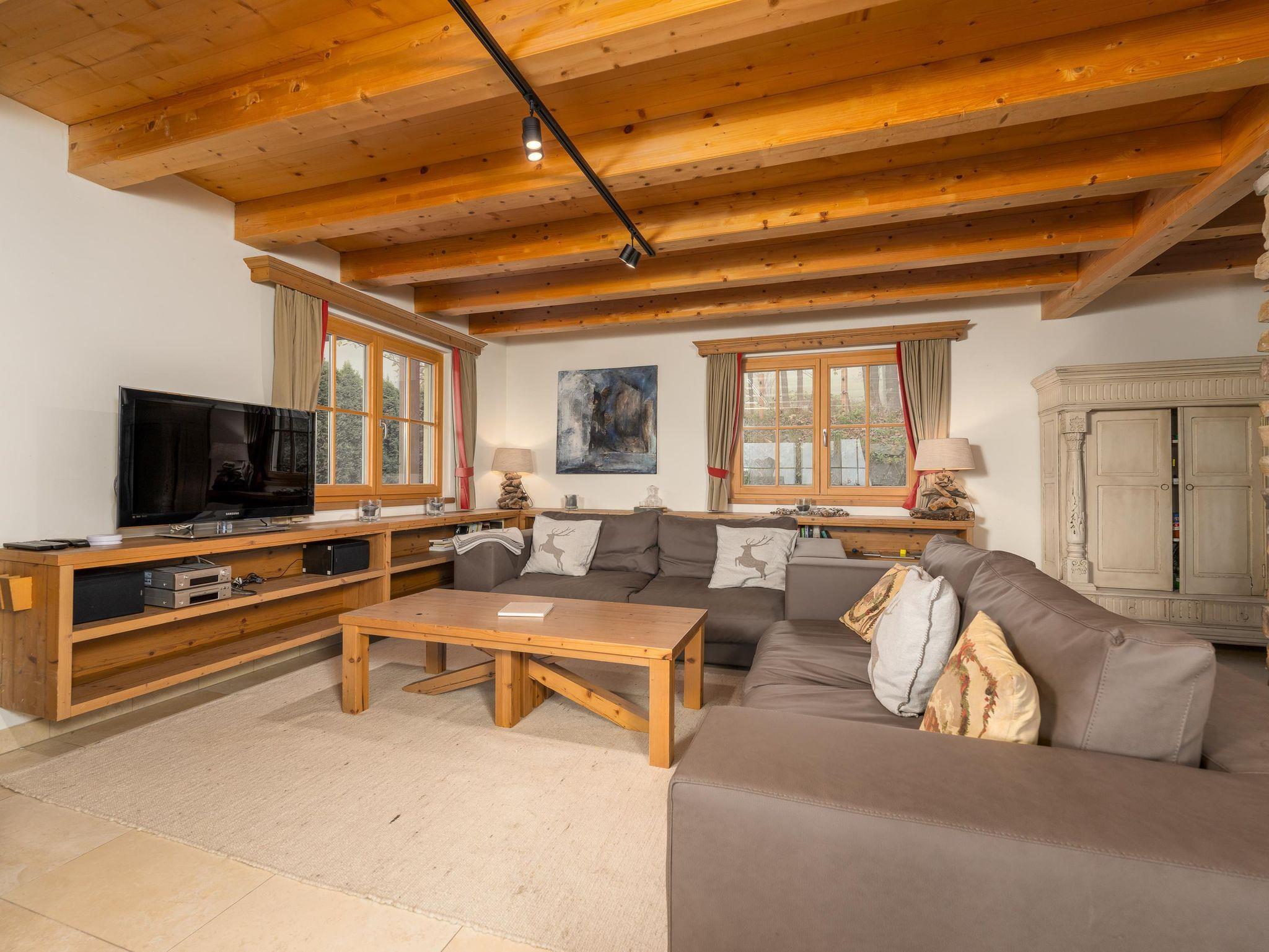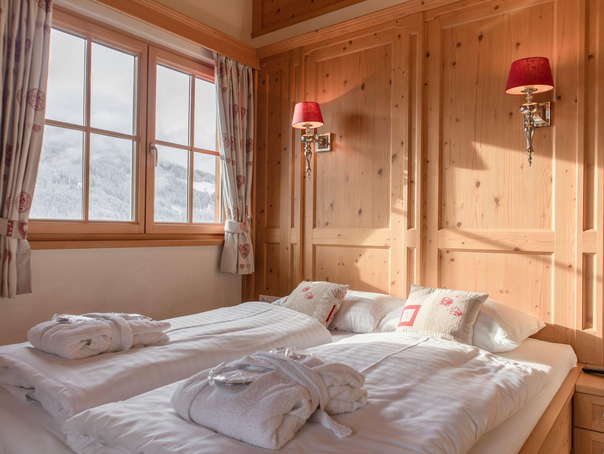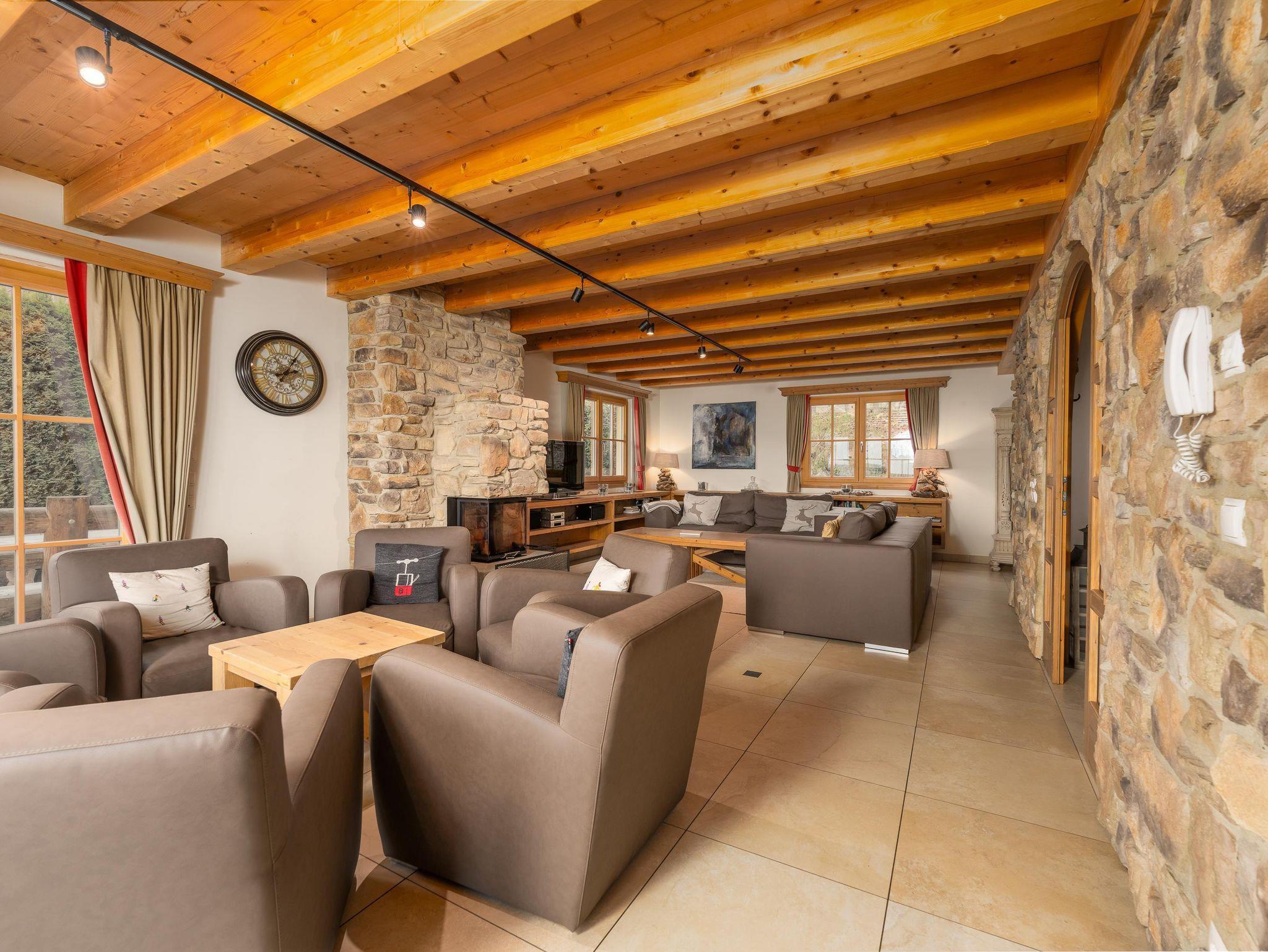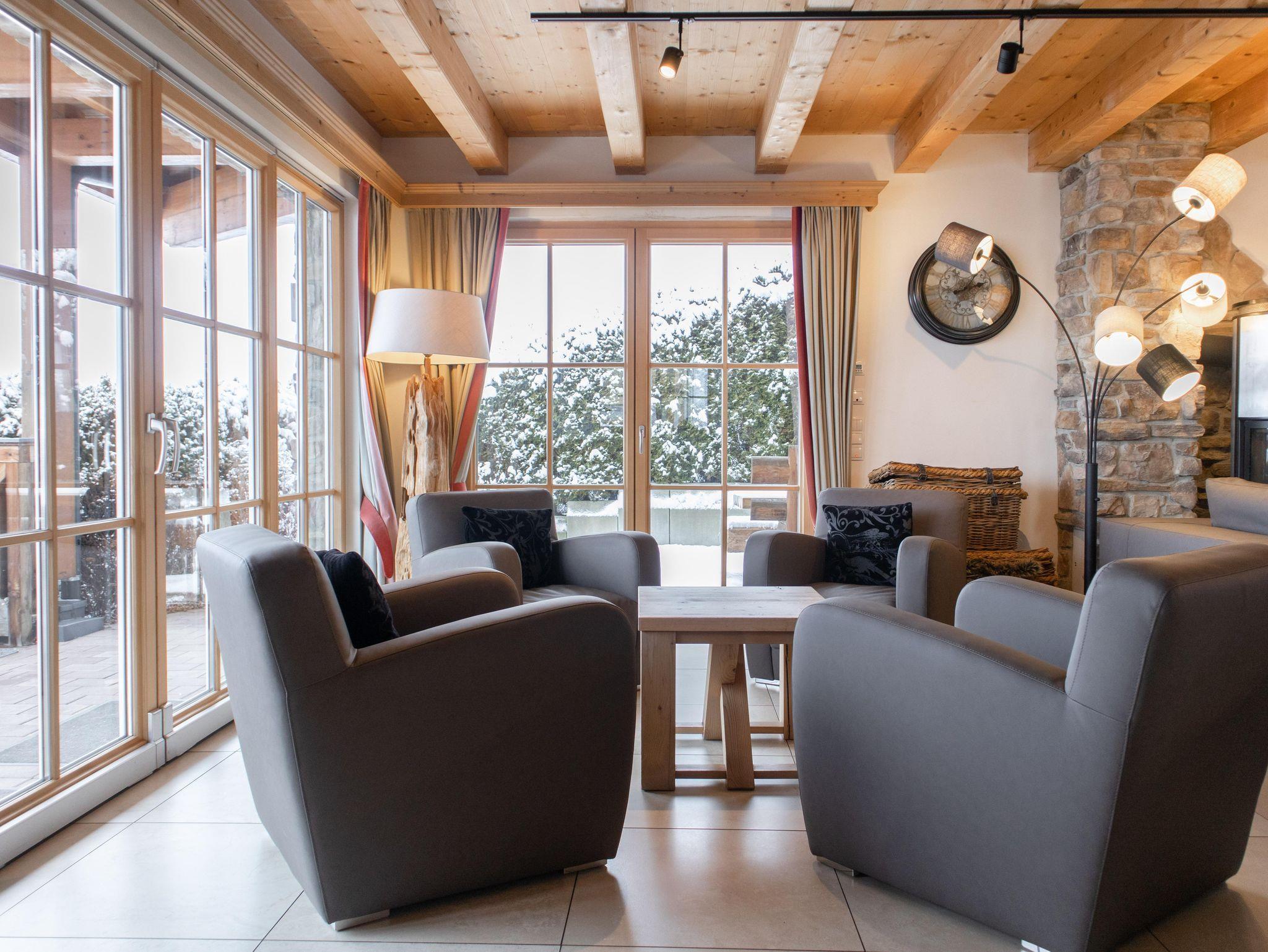 Dieser exklusive Urlaubstraum mit Landhausambiente vereint das typische österreichische Flair mit modernem Komfort. Die Wohnetage im Erdgeschoss besticht durch eine großzügige Essecke mit einer Holzbank. Im Wohnzimmer warten verschiedene Sitzgelegenheiten und ein behaglicher Kaminofen für gemütliche Stunden. Das Obergeschoss beherbergt vier Schlafzimmer, jedes mit einem Doppelbett. Das Chalet bietet zudem einen äußerst geräumigen Carport, der Platz für bis zu vier Autos bietet.