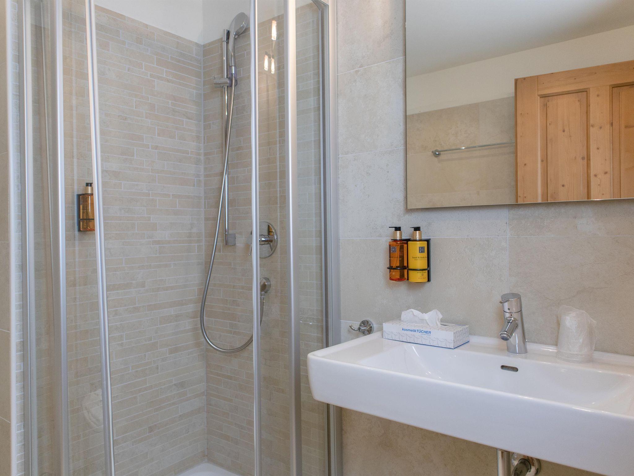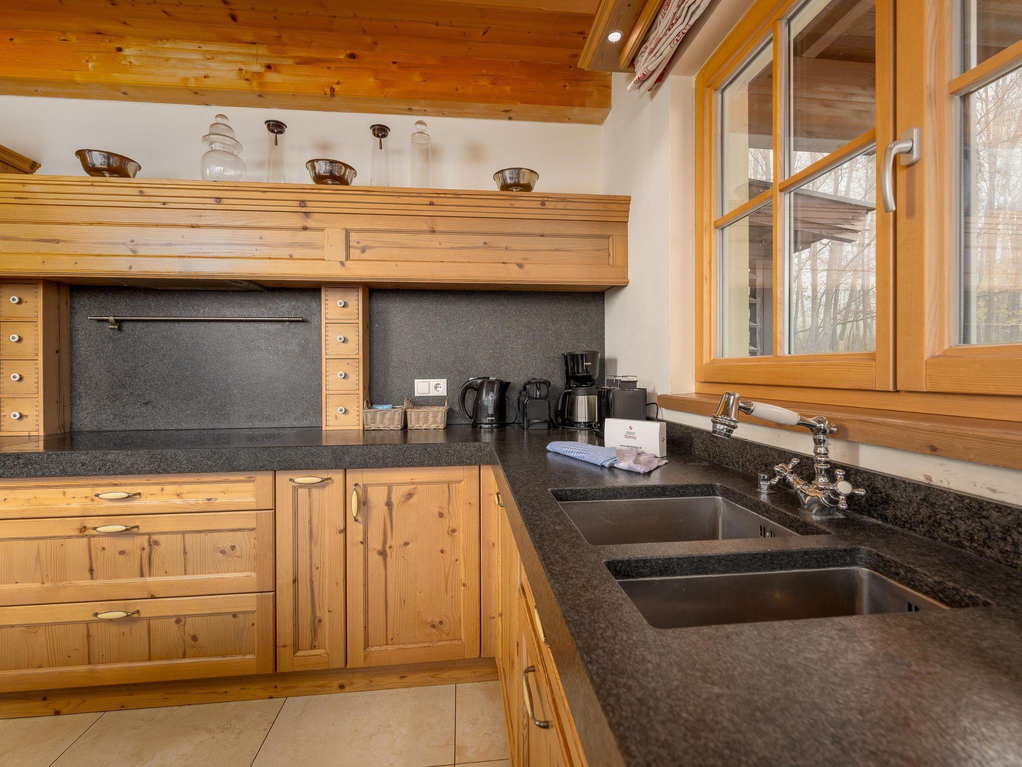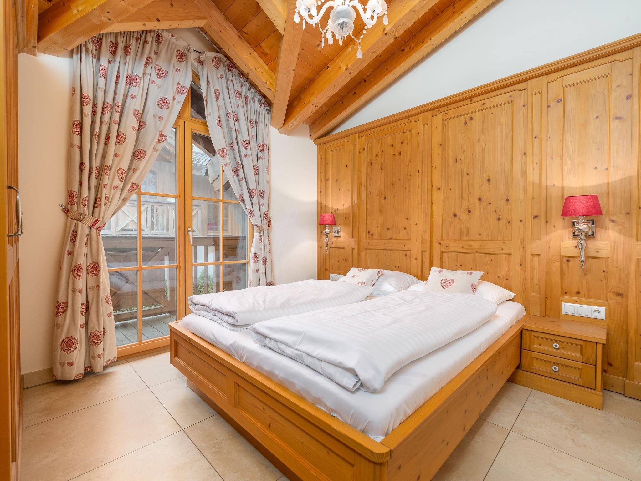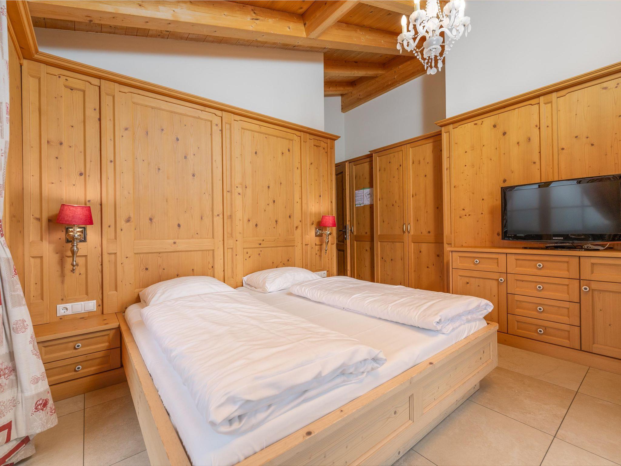 Dieser exklusive Urlaubstraum mit Landhausambiente vereint das typische österreichische Flair mit modernem Komfort. Die Wohnetage im Erdgeschoss besticht durch eine großzügige Essecke mit einer Holzbank. Im Wohnzimmer warten verschiedene Sitzgelegenheiten und ein behaglicher Kaminofen für gemütliche Stunden. Das Obergeschoss beherbergt vier Schlafzimmer, jedes mit einem Doppelbett. Das Chalet bietet zudem einen äußerst geräumigen Carport, der Platz für bis zu vier Autos bietet.