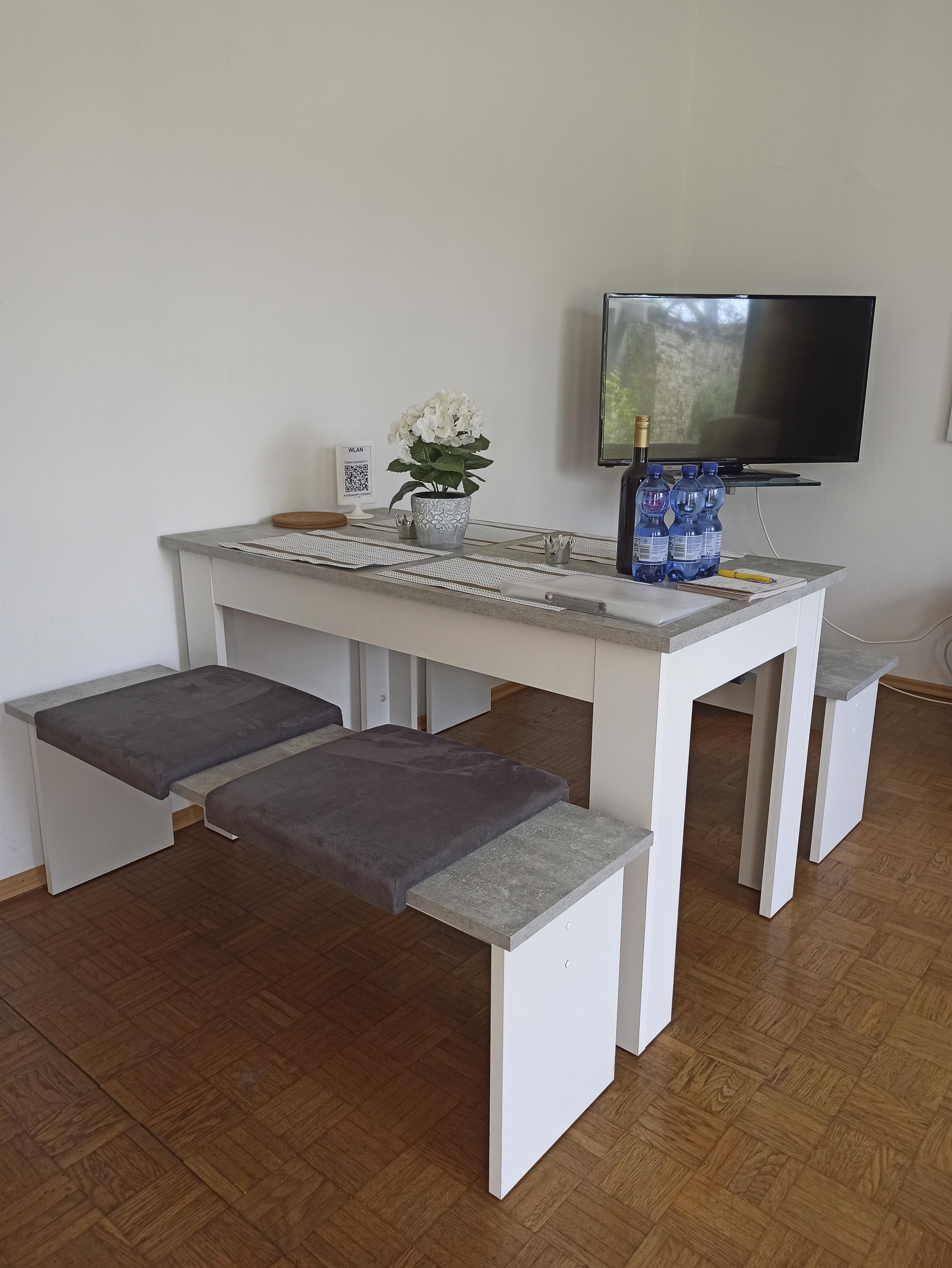 2 Schlafräume, Aufenthaltsraum, Babybett, Babyhochstuhl, Backofen, Bettwäsche vorhanden, Bügelbrett, Doppelbett, Einzelbetten, Essecke, Fenster können geöffnet werden, Fernseher, Fön, Geschirrspüler, Getrennte Matratzen, Handtücher vorhanden, Haustiere nicht erlaubt, Internetanschluss im Zimmer, Internet-TV, Kaffee und Teekocher, Kaffeemaschine, Küche separat, Kühlschrank, Mikrowelle, Nichtraucherzimmer, Satelliten TV, Schlafcouch, Schreibtisch, Sitzgelegenheit, Terrasse, Terrasse am Zimmer, Tisch- und Küchenwäsche vorhanden, Waschmaschine, Waschmaschine im Haus, Wintergarten, Wireless Lan im Zimmer, WLan